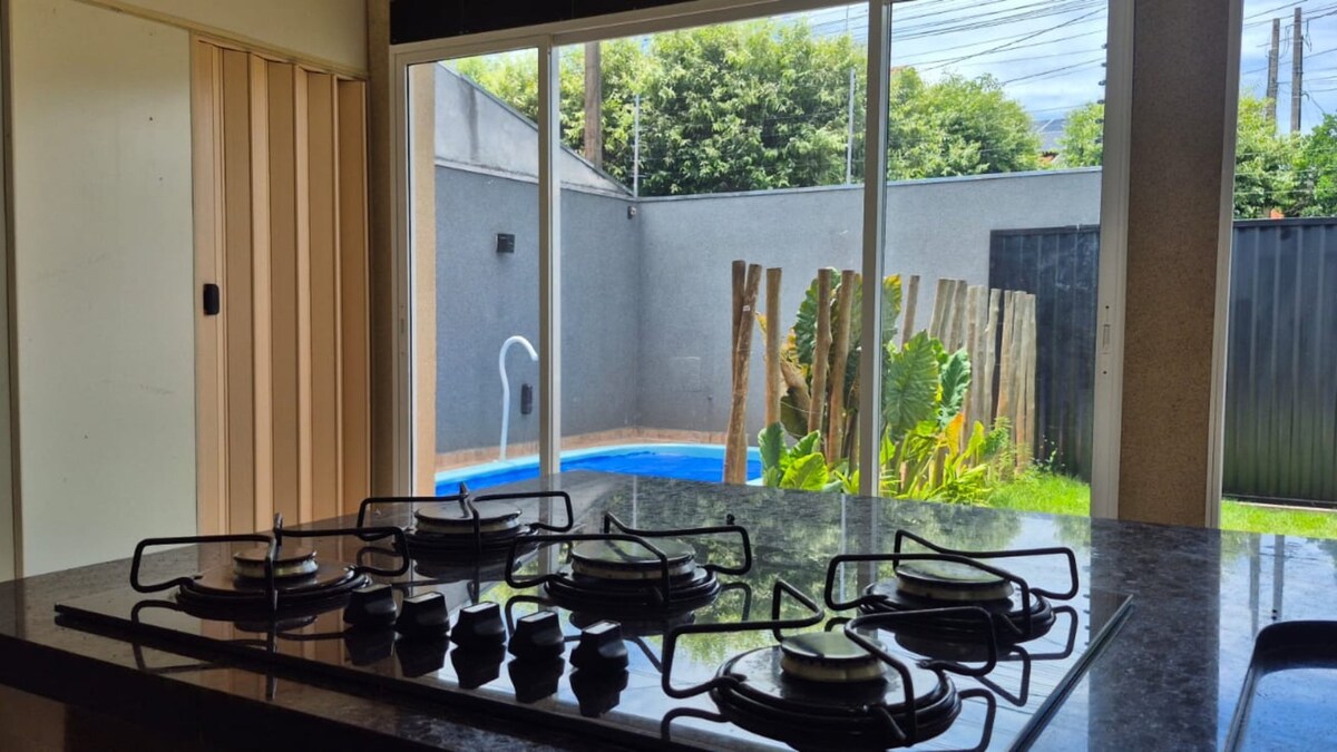 Relaxe neste espaço calmo e cheio de estilo. com conforto e com todos os utensilios de uma casa completa, com microondas e air fryr. Com uma linda piscina pra aproveitar e se refrescar durante todo ano pois detém aquecedor solar . Ar condicionado todo espaço churrasqueira pra um bom churrasco