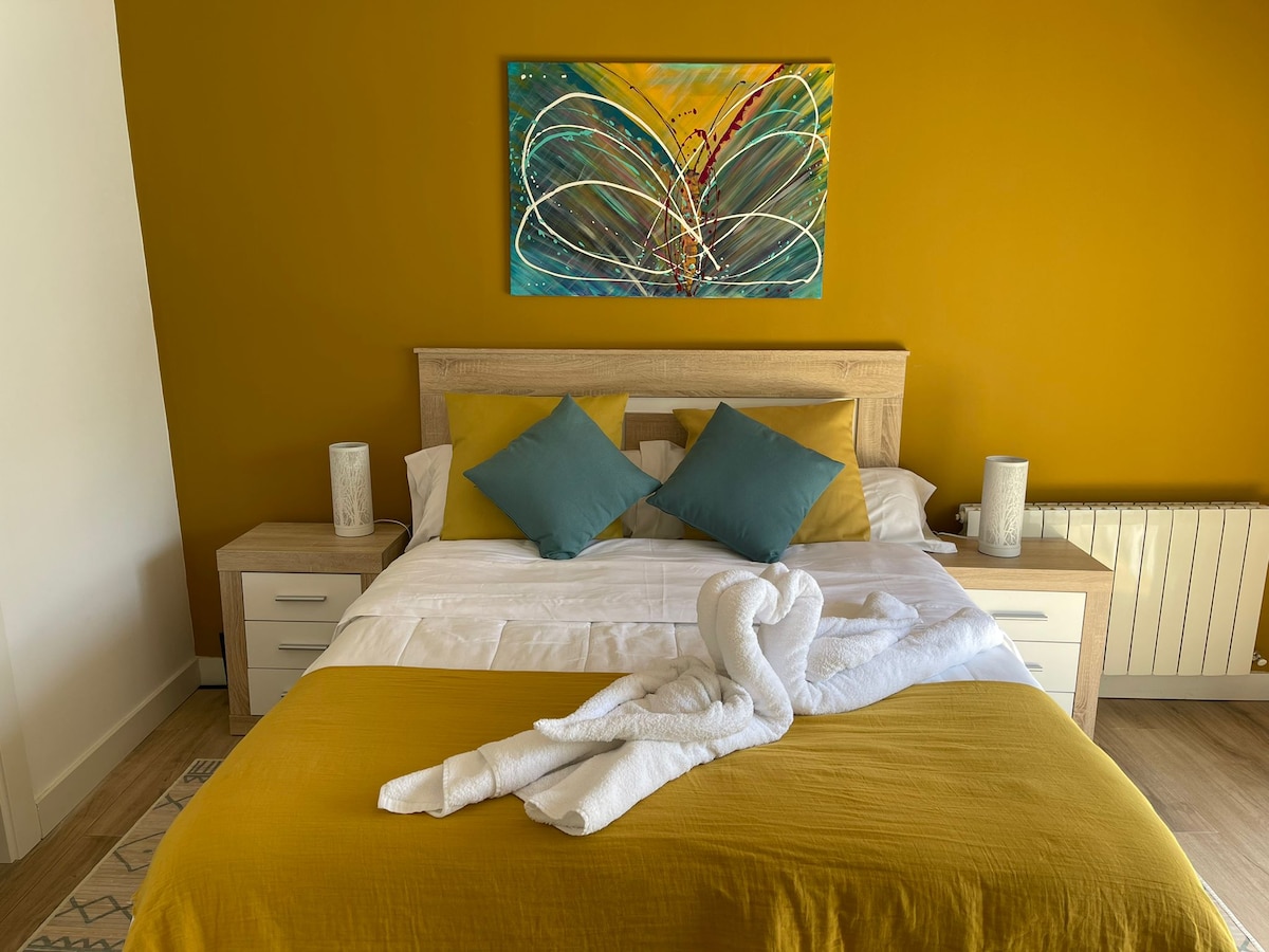 Habitación luminosa/balcón, wifi rápido, 13' playa y centro