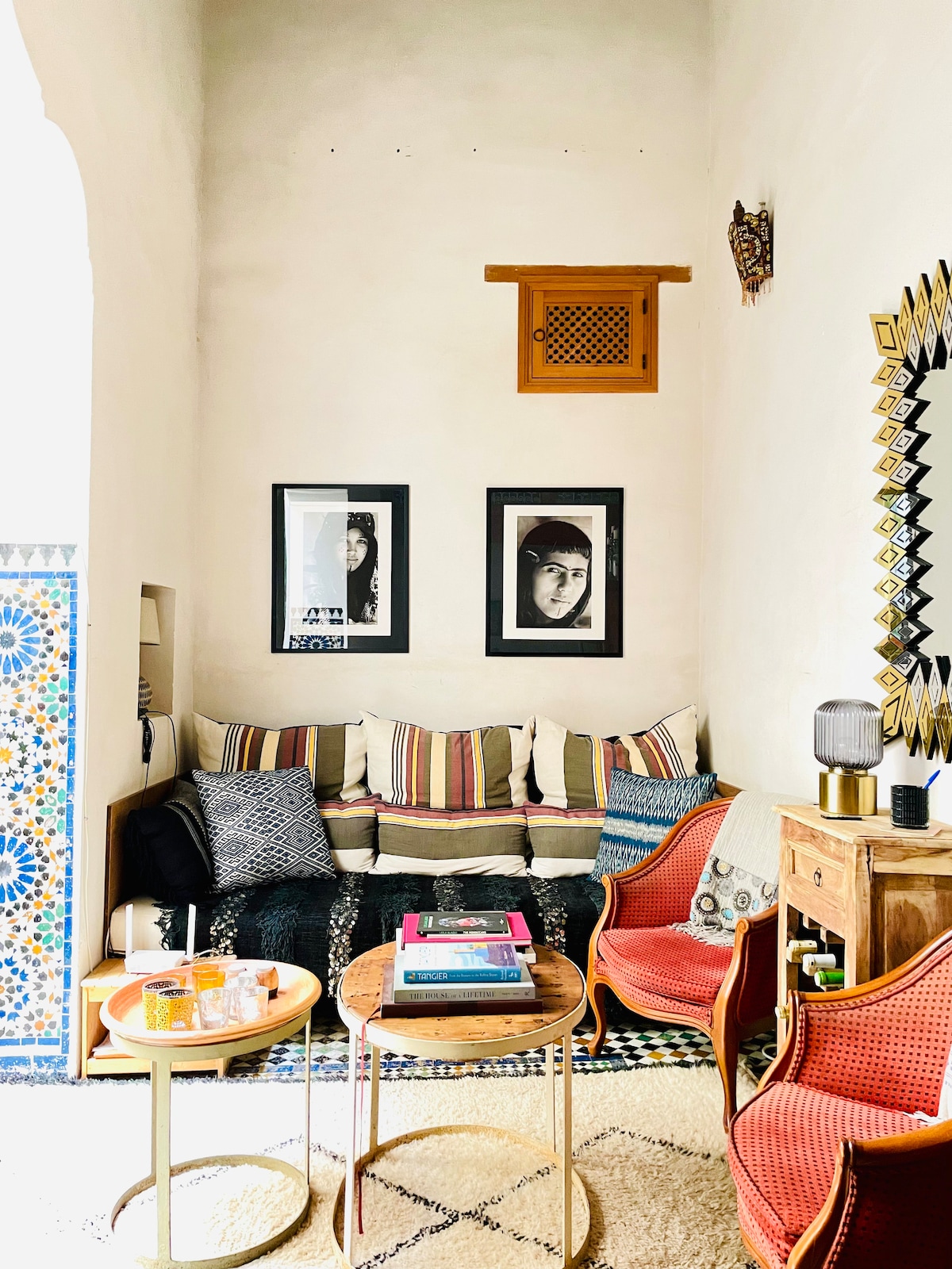 Mezcla con maestría el estilo marroquí atemporal con un diseño moderno Situado en el corazón de la antigua Medina Fez. Ofrece una experiencia inigualable. La amplia suite cuenta con un gran dormitorio, sala de estar adornada con baño privado de mosaico marroquí y aire acondicionado. Los muebles recogidos a mano y las telas exquisitas crean un ambiente de elegancia. Comienza el día con un delicioso desayuno en tu terraza privada y disfruta de la máxima paz y privacidad. ¡Experimenta la magia de Marruecos como nunca antes!