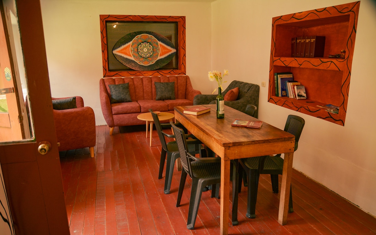 Diseñada para viajeros activos, nuestra casa de adobe de 2 dormitorios tiene unas vistas inmejorables del Valle Sagrado y Pisac. Ubicado en la base de la montaña Apu Linli, los huéspedes disfrutan de aves, plantas autóctonas, jardines y senderismo desde este entorno sereno. Esta casa de huéspedes con cocina bien equipada, patio cubierto, chimenea, lavadora y wifi es ideal para familiares o amigos. Para llegar: camina 20 minutos o toma un mototaxi de 5 minutos desde Pisac a lo largo de las terrazas de maíz incaicas y camina 100 metros cuesta arriba hasta la puerta de la propiedad.