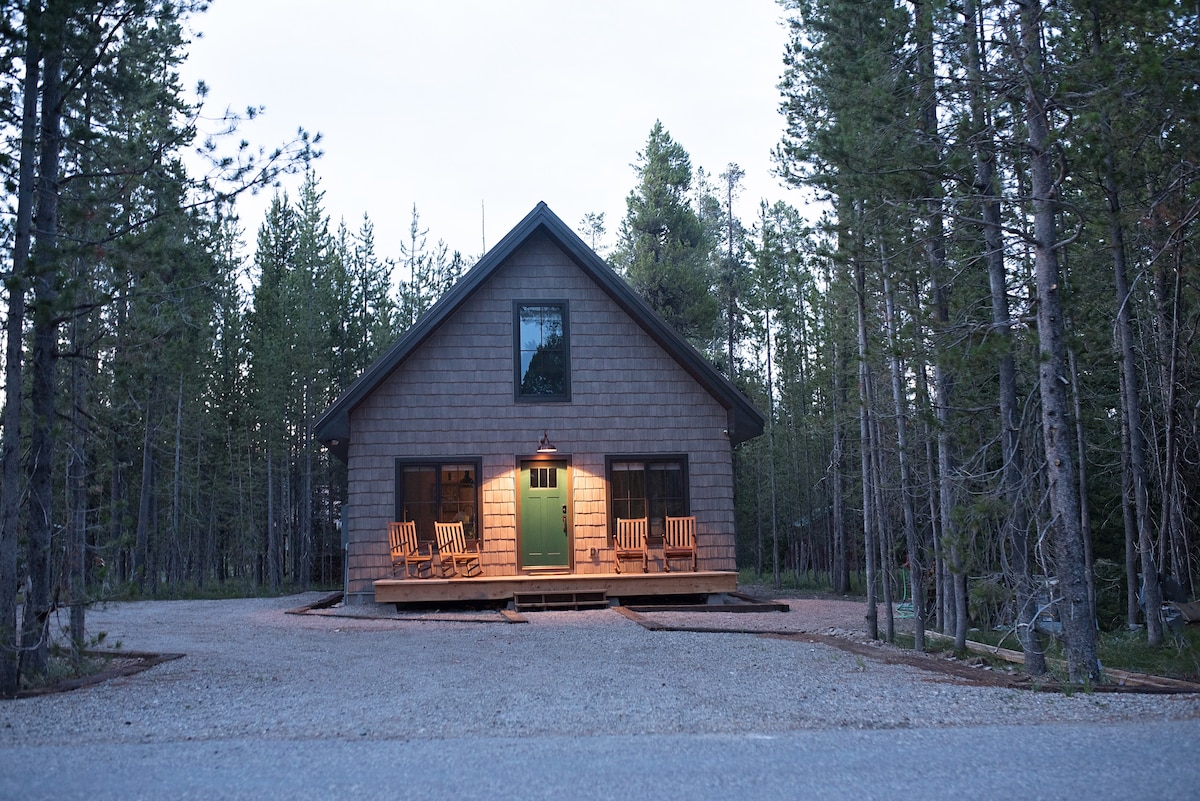 This cozy A-Frame cabin is perfect for couples looking for a simple place to rest and relax after a long day of exploring the beauty of the Yellowstone area. The cabin has a small kitchen for your basic cooking needs and a comfortable sleeping space. The cabin is quiet and is hidden away in the woods for privacy. The property shares an outdoor kitchen and fire pit with our other cabin. NOTE: Must be able to climb a small ladder to reach the loft sleeping space. Futon available on main floor.