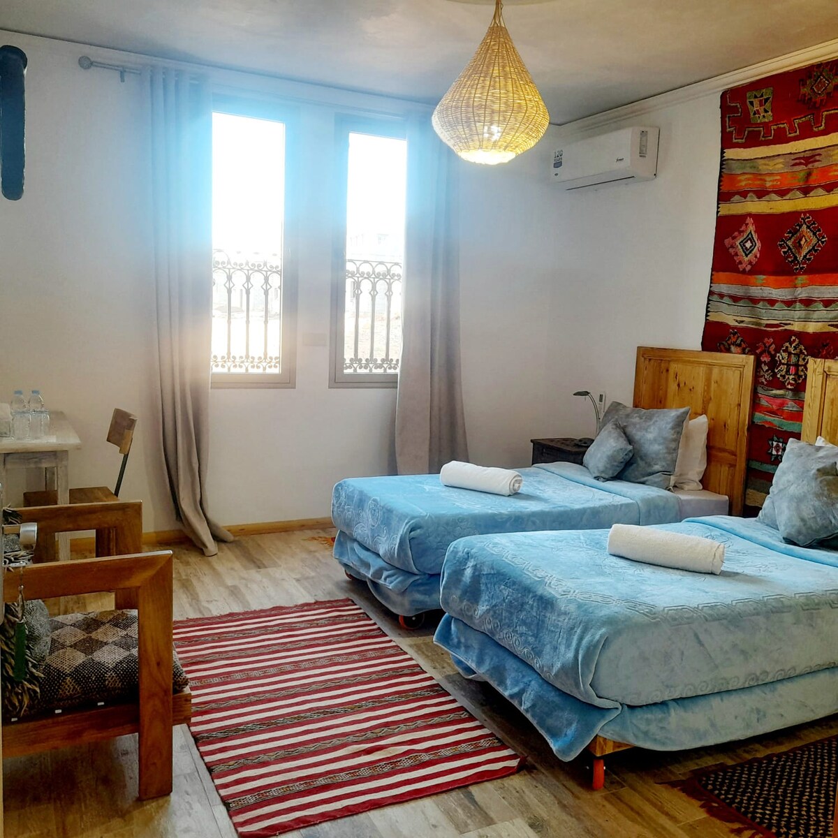 Tigami N-Laman is a cozy, Berber-style guesthouse located in Tarmigt, just 2 km from downtown Ouarzazate. Surrounded by the calm of the desert, it’s the ideal spot for travelers looking to unwind and experience the warmth of southern Moroccan culture. Parking Free parking is available right in front of the house if you're arriving by car. Getting Here Taxis are available anytime from the city center (5 Dh) or from the bus station (8 Dh) to Tarmigt Supermarket, just a short walk from us.