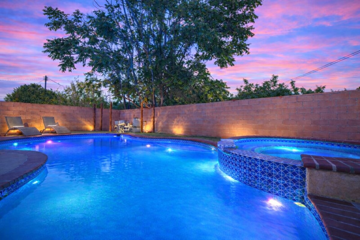 *Casa renovada y soleada en el prestigioso barrio de Los Ángeles. 🌅 * ¡Oasis céntrico con barbacoa, chimenea, sofás al aire libre y un gran patio trasero cubierto de hierba! 🔥🍖 * ¡Piscina recién reformada para tomar el sol y relajarse! 🏊⛱️ * Ideal para niños con un gran patio con césped y opción de vallar la piscina. 🌱💚 * ¡A 2 minutos de restaurantes de primera categoría en Ventura Blvd! 🍷🍷 * Paseos nocturnos en barrio de alta gama. * Wifi rápido + TV vía satélite + juegos para disfrutar. * Cena al aire libre bajo las luces de los cafés. * ¡Sofás al aire libre para relajarse! * Tumbonas para el perfecto baño de sol después