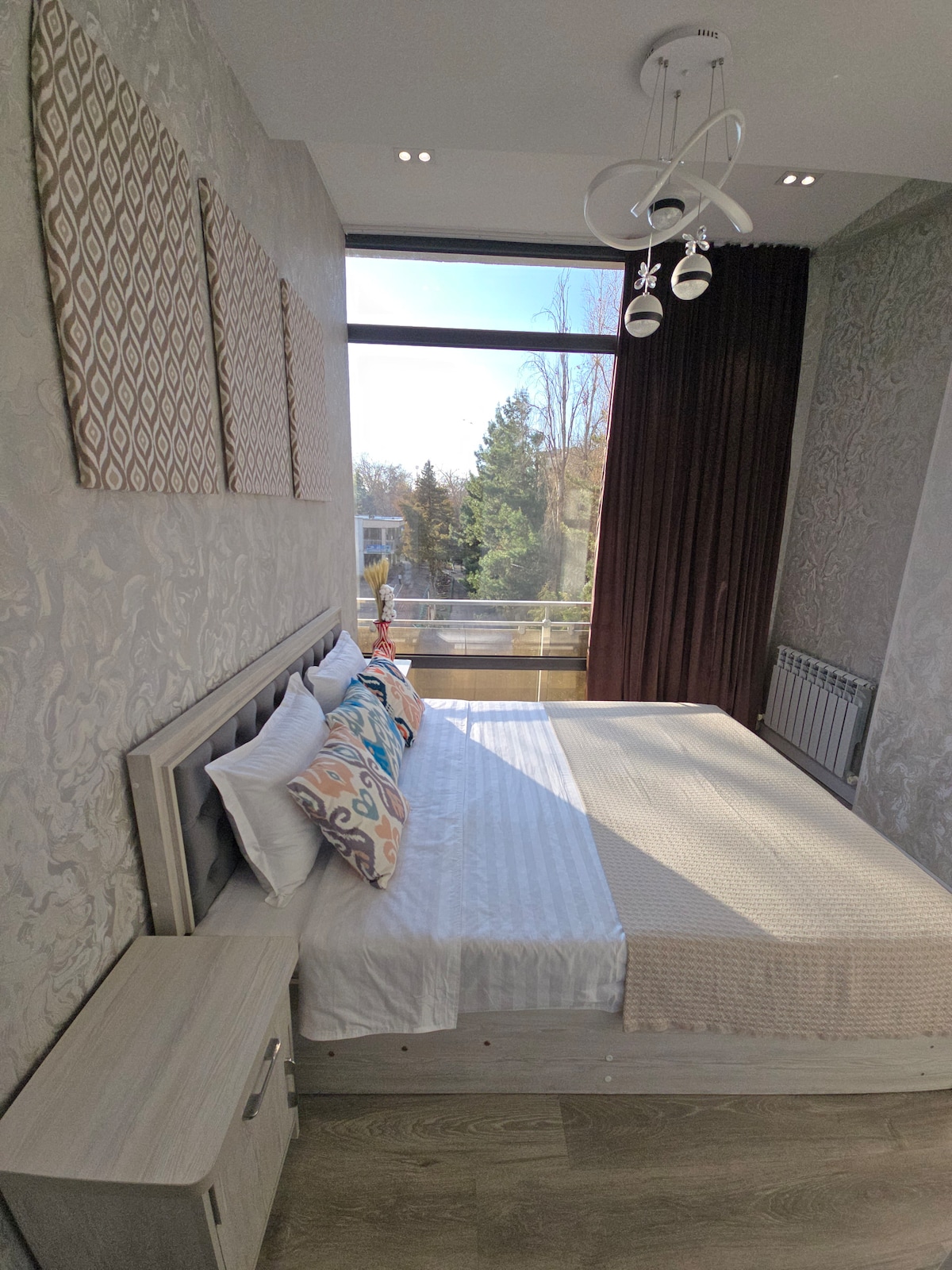 Premium Location The Apartment in the center of Tashkent near the Metro and Avenue. The safest place for tourists. The Apartment is very cozy, neat and clean. Living conditions are like as in a hotel. Feel the coziness and comfort. Our apartment also has a 24/7 transfer service from the airport to the apartment and the most beautiful places of Tashkent and the mountains of the Tashkent region. The apartment has high-speed WiFi, 2 smart TVs, refrigerator, microwave, 2 airconditioning, hair dryer