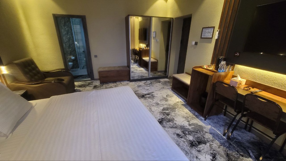 Стандартный двухместный номер с 1 кроватью. Двухместный номер с 1 кроватью, кондиционером, телевизором с плоским экраном и потоковыми сервисами, звуконепроницаемыми стенами, принадлежностями для чая/кофе, гостиным уголком, а также видом на город. В номере одна большая кровать.