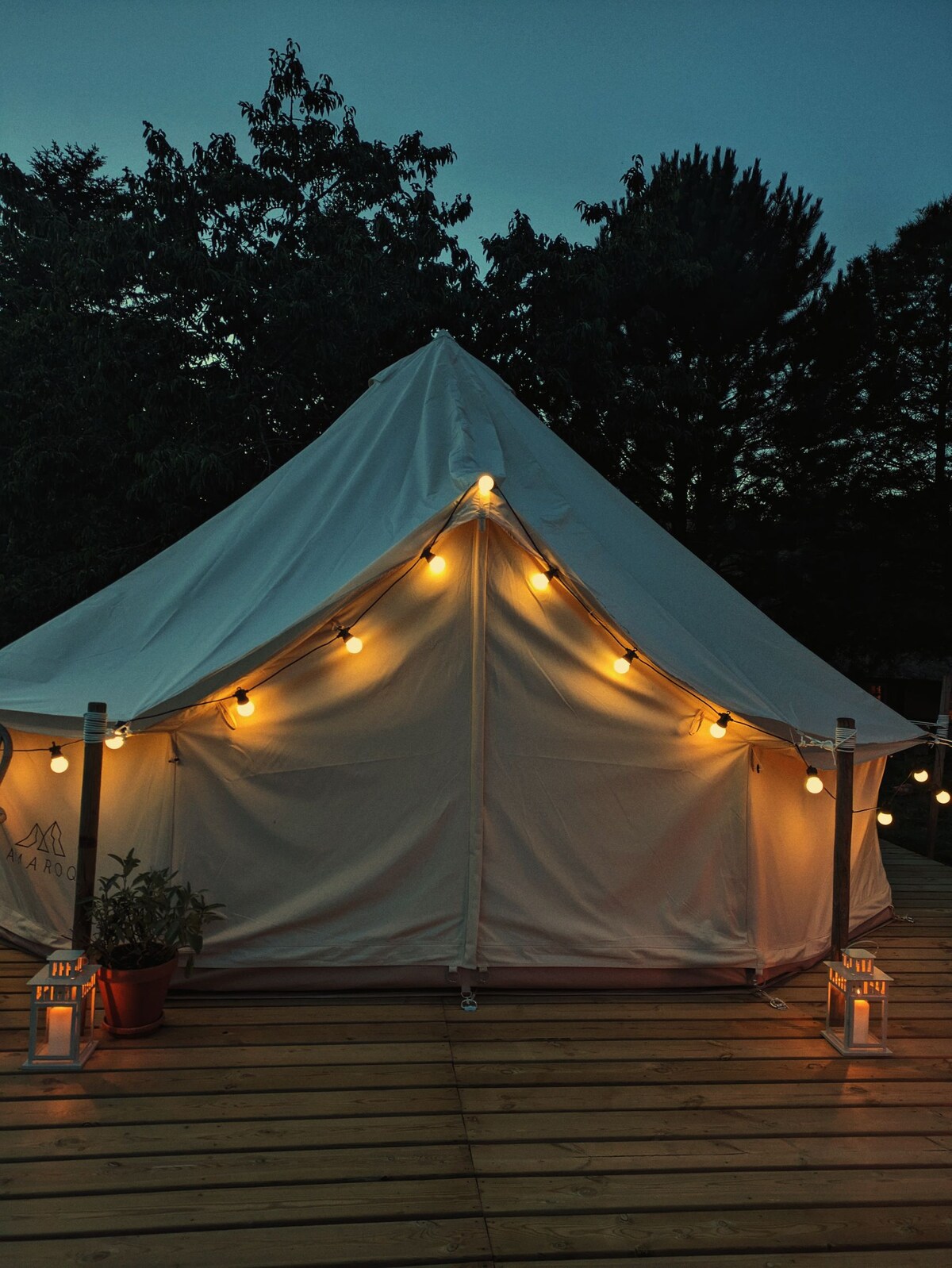 Tienda de campaña de lujo con vistas aventureras