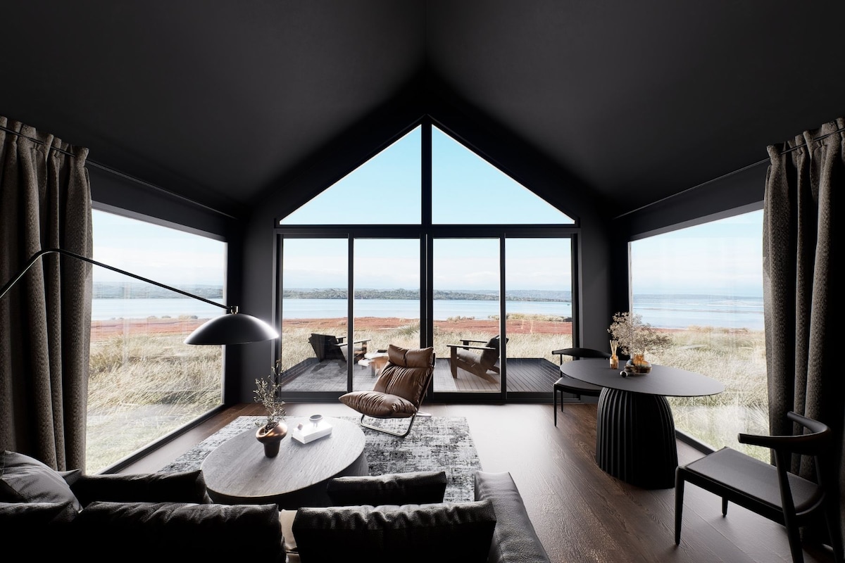 Habitación de tipo cabaña con cama king en el Hotel Bruny