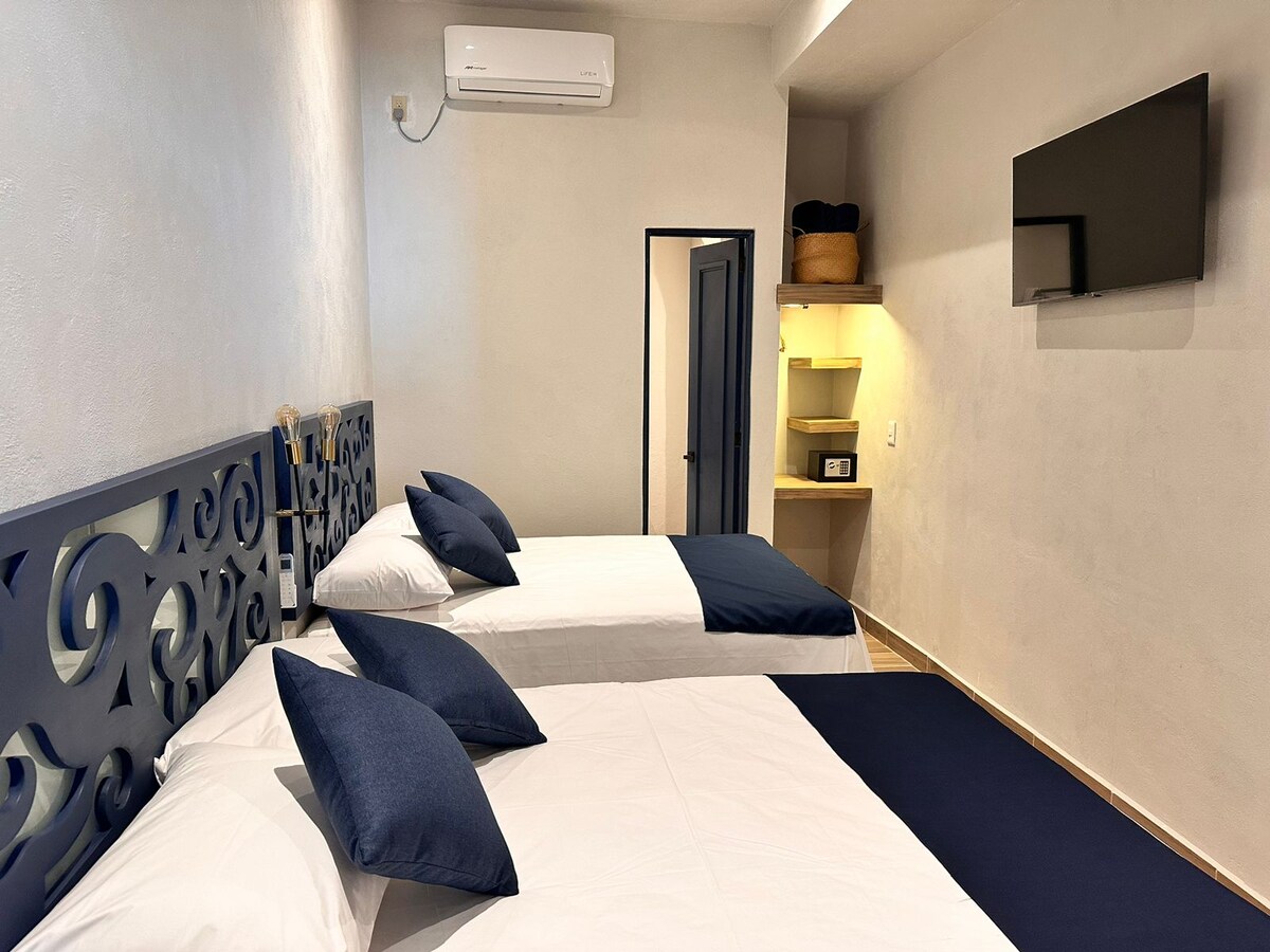 A solo 3 minutos caminando del zócalo este lugar tiene una ubicación estratégica: ¡será muy fácil planear tu visita! Cerca de restaurantes, bares y lugares de interés. Totalmente nuevo y equipado con todo lo que necesitaras durante tu estancia