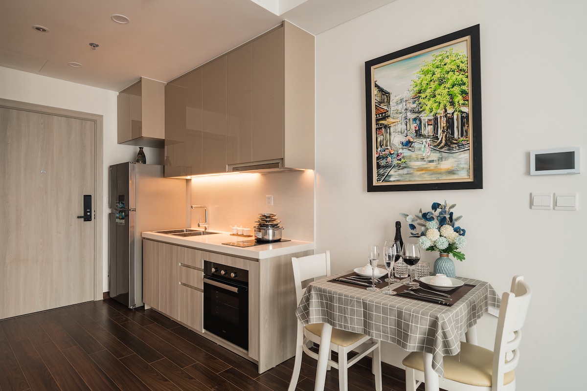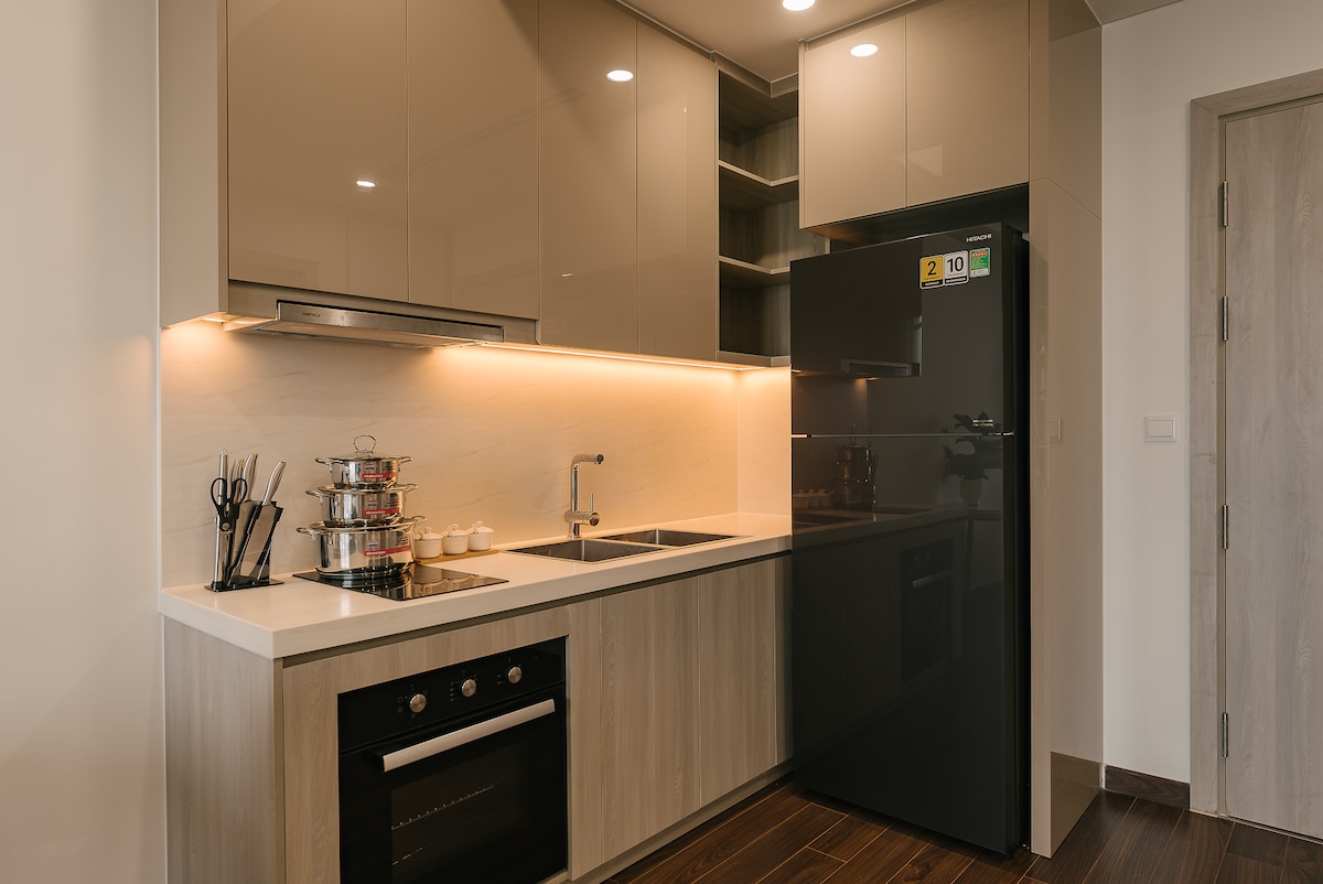El apartamento está lujosamente diseñado, moderno con espacio abierto, vistas poéticas tanto del lago como de la brillante ciudad. Cocina totalmente equipada con utensilios de cocina básicos, horno conveniente, listo para comidas deliciosas. Puedes relajarte con el televisor de pantalla grande disponible Netflix o disfrutar de una copa de vino en tu propio espacio acogedor. En particular, también tienes acceso gratuito a una moderna piscina y gimnasio en las instalaciones, lo que te ayuda a mantenerte activo y relajante durante tu estadía.