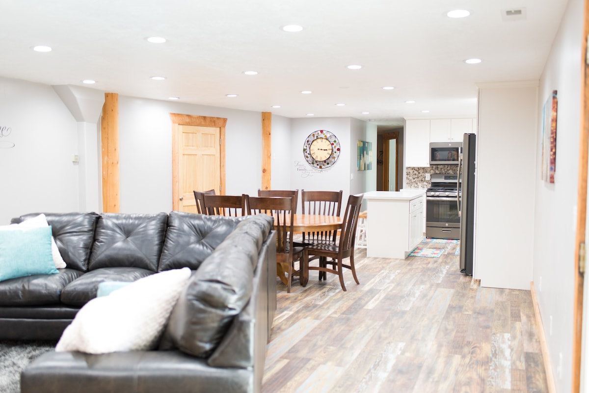 Apartamento en el sótano recién remodelado, privado y con entrada independiente. Nuestro espacio es un gran apartamento tipo estudio con cocina completa, lavadora y secadora para tu uso privado. ** Ten en cuenta que encima del apartamento se encuentra el área de cocina de los anfitriones. Con una familia de 7 personas viviendo en la casa, puede haber una buena cantidad de tráfico peatonal y ruido.** Aproximadamente a 15 minutos del aeropuerto SLC, a 37 minutos de Snowbird y a 27 minutos del centro de Salt Lake. Este alquiler requiere que los inquilinos puedan bajar las escaleras de forma segura.