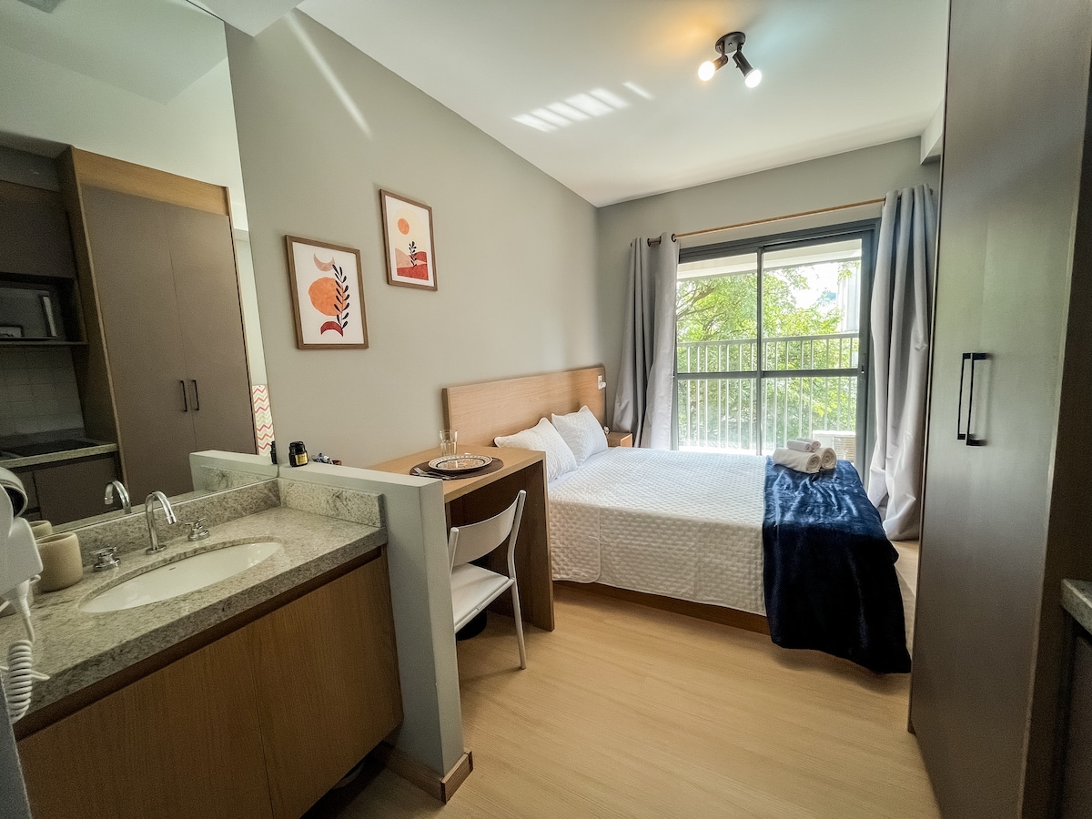 El estudio es nuevo, está bien decorado y equipado con productos de alta calidad, lo que proporciona comodidad y calidez para tu estancia. El edificio está situado en el centro de São Paulo, en el barrio de Bela Vista, famoso por sus restaurantes de pasta y su fácil acceso a las principales atracciones turísticas, transporte y centros de eventos de la ciudad. El edificio es residencial, con seguridad las 24 horas, aparcamiento y ascensor. ¡Tenemos más estudios en este edificio por si vienes con tu familia!