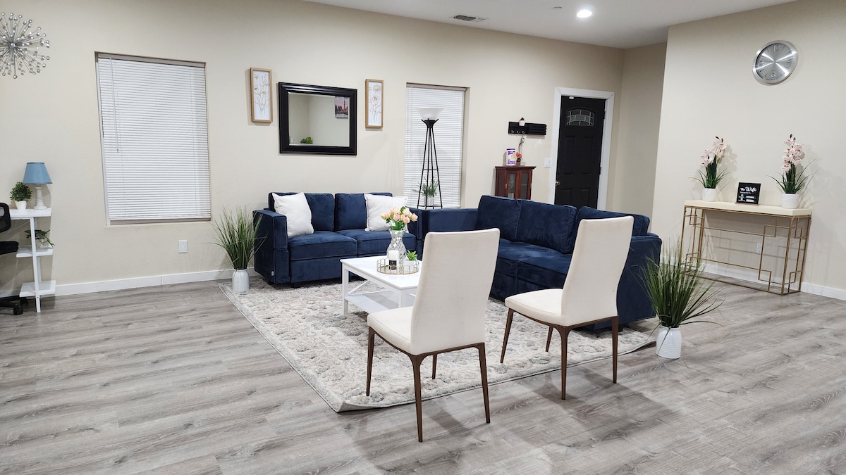 A solo 2 minutos en coche de la Interestatal 5, esta casa es céntrica para TODOS los servicios que ofrece Red Bluff. A menos de una hora del Parque Nacional Volcánico de Lassen, a 2 minutos del recinto ferial del condado de Tehama, a 4 minutos del centro histórico y a poca distancia a pie de Starbucks, Applebees y otros restaurantes locales. Disfruta de wifi rápido, estacionamiento privado y espacioso (con suficiente espacio para estacionar un remolque) y una casa elegante y cómoda. ¡Perfecto para escapadas largas o estancias de una noche!