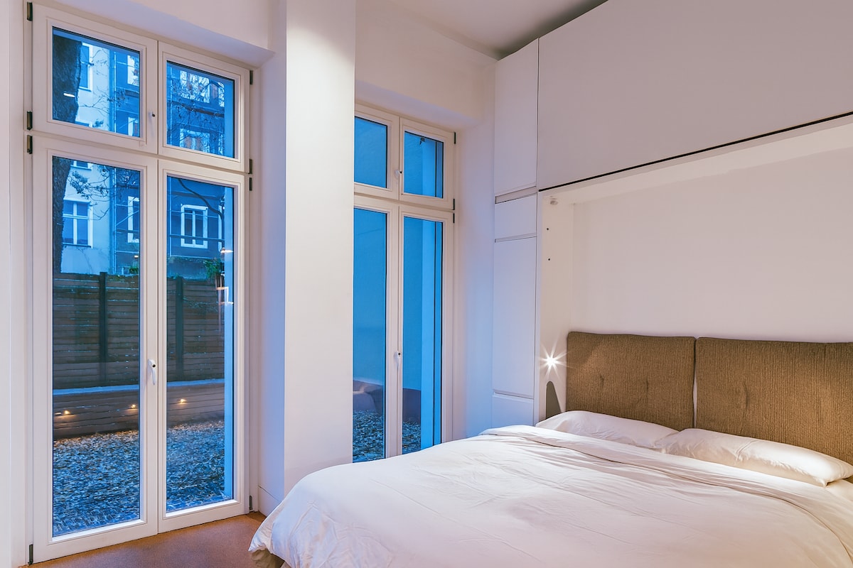 Bienvenido a esta espaciosa y elegante suite privada en el corazón histórico de Berlín, a pocos pasos de los lugares más importantes de la ciudad, excelentes restaurantes y vibrantes zonas comerciales. Disfruta de total privacidad, vistas tranquilas al jardín, sueño tranquilo y confort moderno y refinado. Las ventanas del piso al techo llenan el espacio de luz natural, mientras que un lujoso dormitorio tamaño king, una cocina de alta gama y un elegante baño con ducha de lluvia y bañera crean un refugio tranquilo en medio de la ciudad.