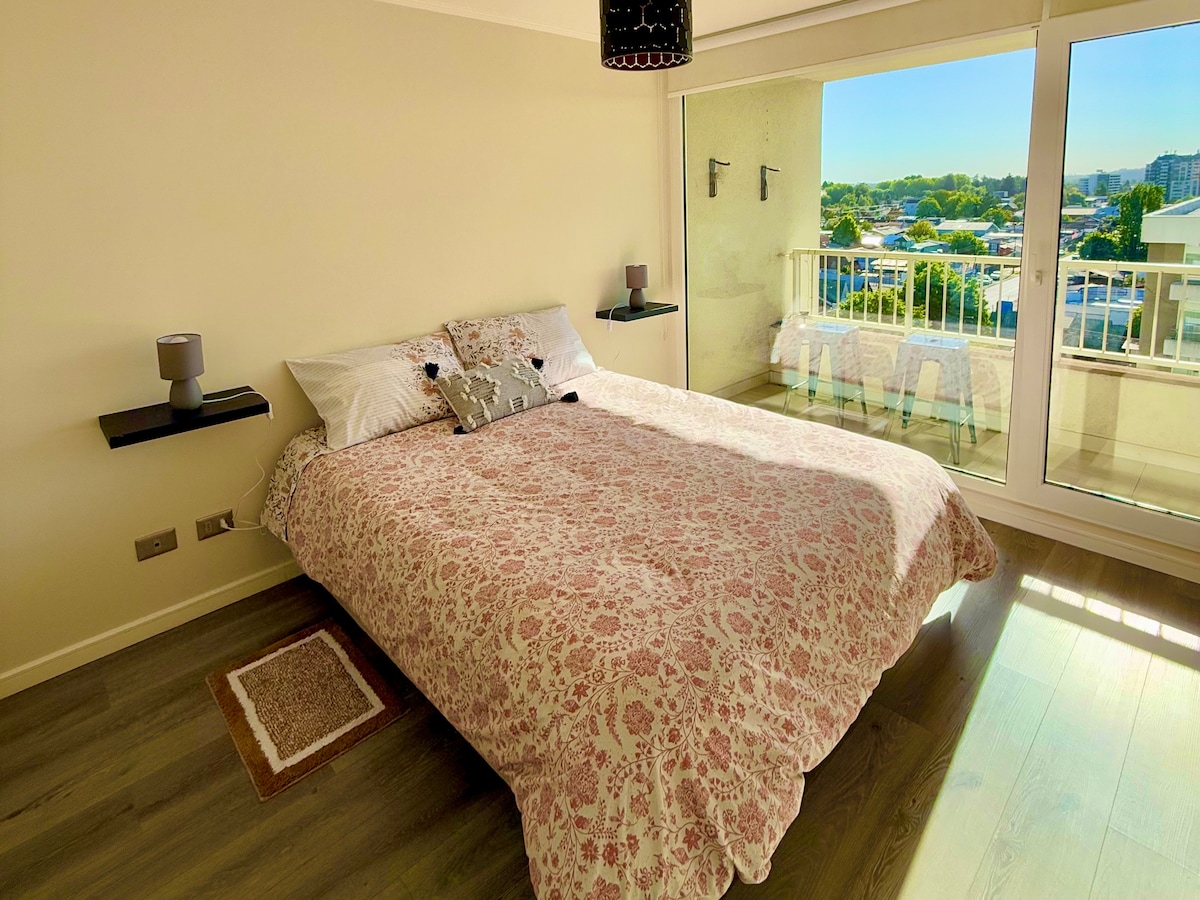 Quédate en pleno corazón de Temuco, con una ubicación privilegiada que conecta con todo lo que la ciudad ofrece: restaurantes, cafés, comercio, universidades y puntos turísticos, todo a pasos de distancia. El departamento es cómodo, moderno y acogedor, ideal para descansar después de un día de trabajo o de paseo. Tiene cama confortable, living, WiFi rápido y cocina equipada. Ya sea por trabajo, estudios o vacaciones, este es el lugar perfecto para disfrutar Temuco con comodidad y estilo. 🌿