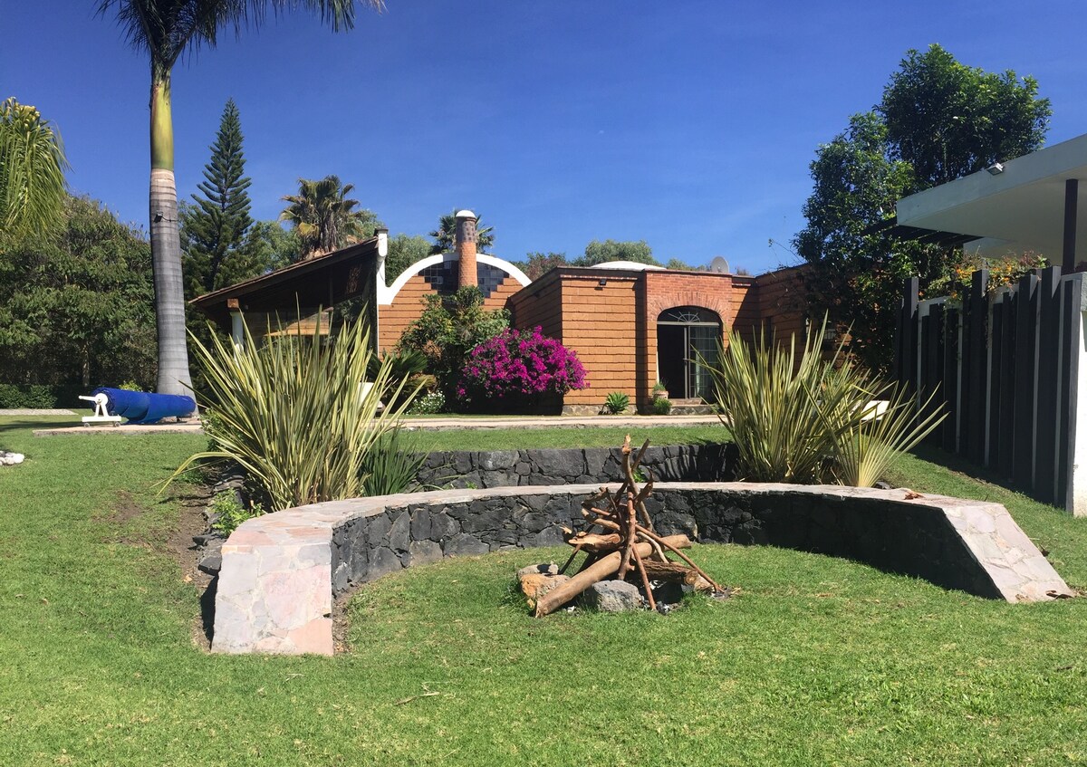 Disfruta de una bella casa de campo con arquitectura mexicana, de espacios amplios y ambiente ameno, un campo siempre verde y una frescura que se respira. Contamos con internet y wifi de alta velocidad LEER PRIMERO 1. Pedimos respeto a nuestro hogar y a quienes los atenderán 2. Se pueden hospedar hasta 19 personas. A partir de las 11 se cobrará una cuota adicional por persona 3. Quien renta TIENE LA OBLIGACIÓN de compartir las reglas a sus invitados a su llegada