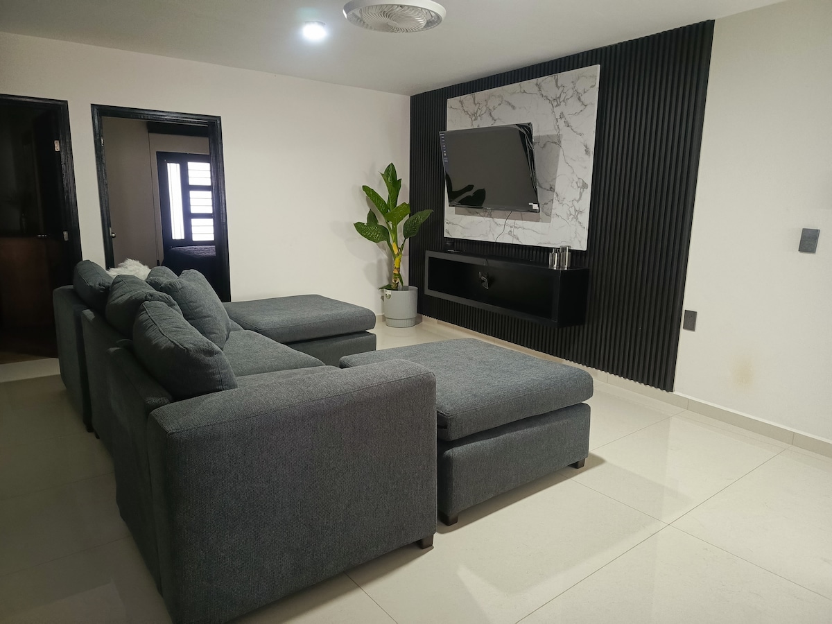 Bienvenidos sean a este acogedor y hermoso lugar que hemos diseñado especialmente para que tengan la más confortable estancia, desde el corazón de la ciudad de Tepatitlán a solo 3 cuadras de la plaza principal, siéntanse como en su casa. Estamos encantados de recibirlos. Este espacio cuenta con lo mejor para tu hospedaje como: Wifi, Smart tv 45", aire acondicionado, cafetera, frigobar, cocina equipada, microondas, licuadora, Netflix y muchas plantas.