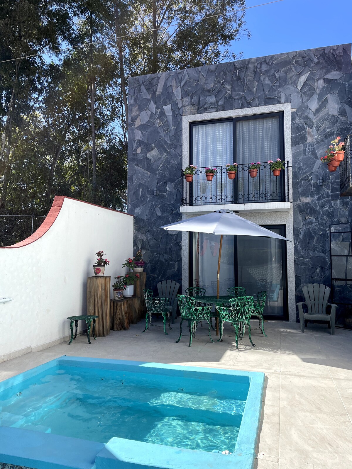 Hermosa y confortable casa estilo Mexicano .Para 8 personas, ubicados a 10 min.en auto del centro de Tequis, a 30 min de Peña de Bernal y a 20 min. de diversos viñedos. Alberca de 7x4 climatizada con sistema solar privada solo para ti. Asador, Fogatero,Chimenea(no incluye leña ni carbón)fuente, jacuzzi,cocina equipada, WIFI, Smart TV 50” 4K y tv cable, NETFLIX,YouTube.Aceptamos 2 mascotas med.con costo de $300 (registrarlas en la APP)