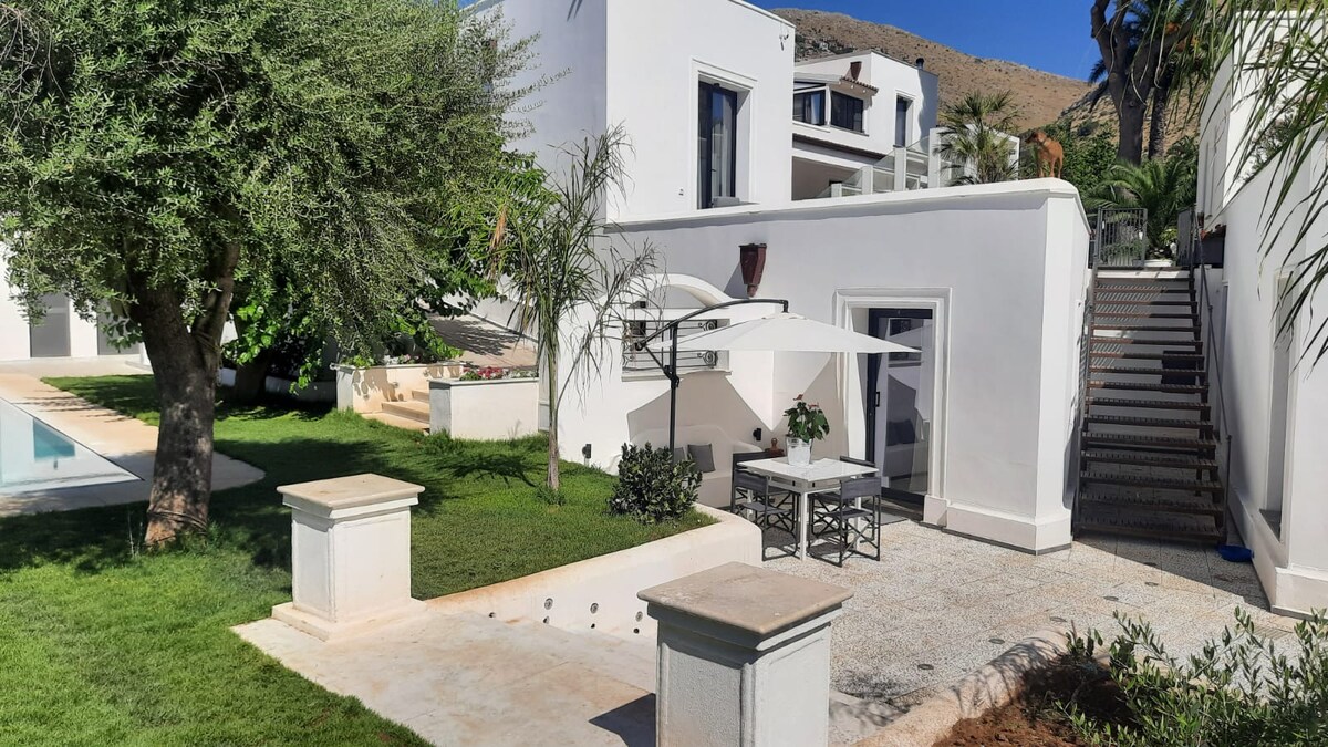 Mondello Pool & Suite es una casa de vacaciones en una villa con un gran jardín. A 3 minutos en coche (8 minutos a pie) de la playa, a 20 minutos del aeropuerto y a 15 minutos del centro de la ciudad, es el lugar perfecto para pasar tus vacaciones de verano y visitar Palermo. La casa consta de dormitorio, baño y cocina, sala de estar con sofá cama y las zonas comunes al aire libre constan de jardín, piscina y solárium, ducha al aire libre, cocina pequeña y comedor al aire libre.