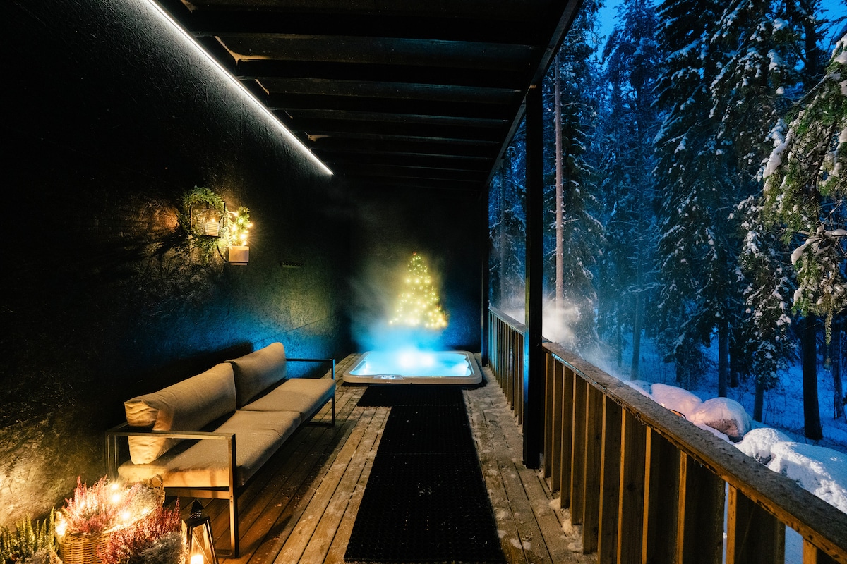 Puedes disfrutar de la naturaleza y el paisaje del río durante tu estancia. Mientras disfrutas de la sauna o del jacuzzi al aire libre, es posible que tengas la oportunidad de ver la aurora boreal. Esta mini casa puede alojar a 4 personas cómodamente, pero tenemos camas incluso para 6. Tiene cocina completa y salón con ventanas que dan al río, sauna, ducha, aseo y dos dormitorios con grandes ventanales que dan al bosque. En el exterior tiene dos amplias terrazas, una con jacuzzi. El edificio acaba de completarse.