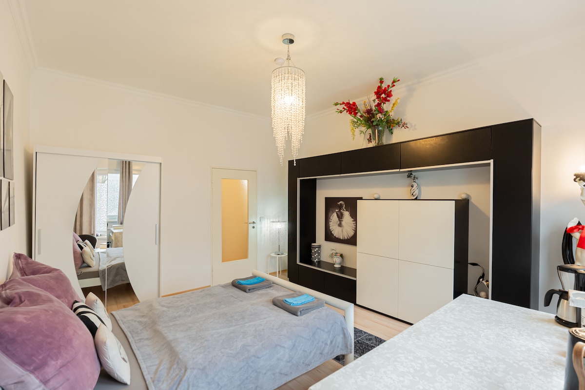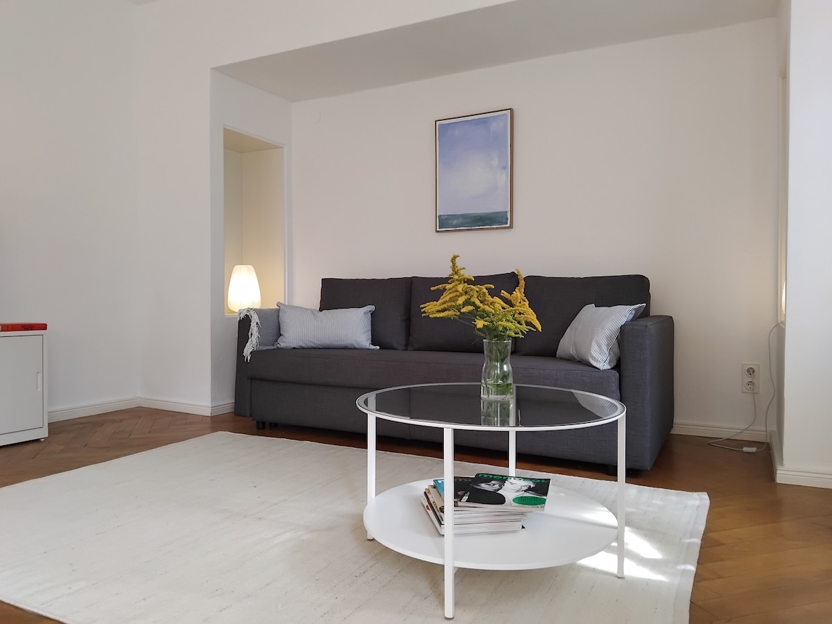 Apartamento de diseño espacioso (75m ²), de alta calidad y tranquilo en Berlín Charlottenburg para hasta 5 personas. Excelente ubicación, diversas ofertas en el barrio y muy buenas conexiones de transporte, así como aparcamiento privado. Messe Berlin está a 10 minutos a pie o a 3 paradas de autobús y el zoológico City West está a 15 minutos en metro.