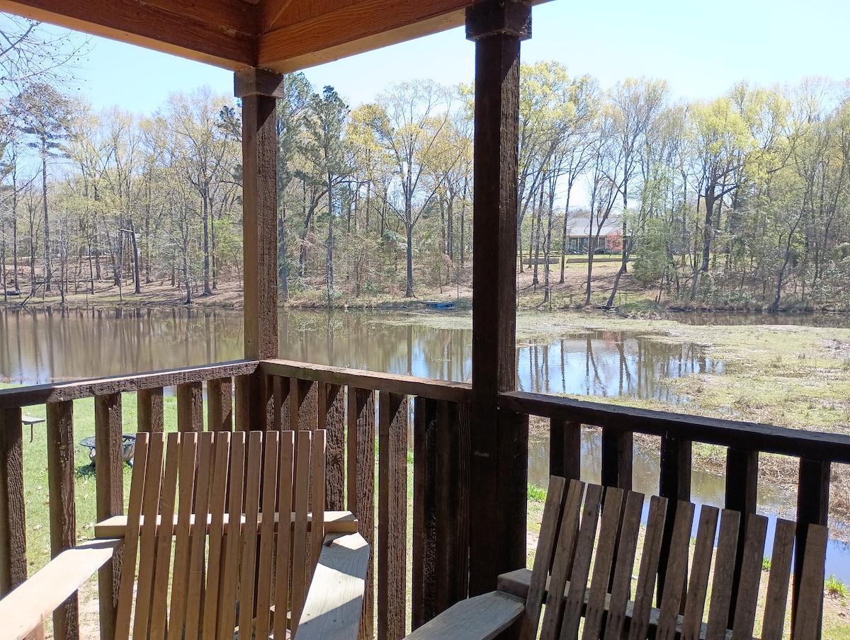 En este alojamiento se respira tranquilidad: ¡relájate con toda la familia! ¡La casa está en la parte trasera de 20 acres! ¡Tiene un estanque abastecido para pescar o tomar café en el porche delantero y ver ciervos de cola blanca en el patio! Patio trasero vallado para mascotas y mucho espacio para que deambulen y estanque para que naden. Tiene un gran garaje. A 3,5 millas del recinto ferial, a 4 millas del centro de Texarkana, a 2,8 millas de Cooper Tire. ¡Lo suficientemente cerca de todo, pero más relajante y tranquilo de lo que puedes conseguir en un barrio!