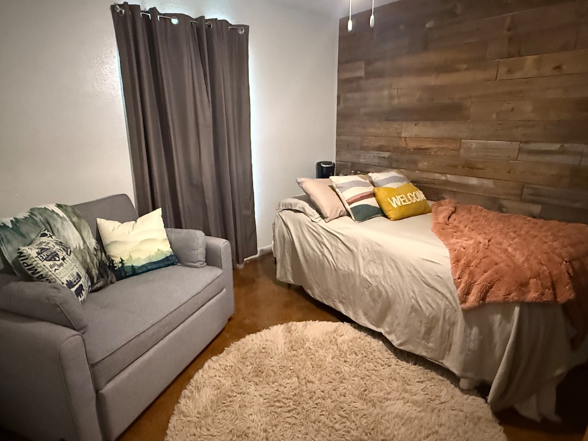 Ubicación conveniente para todo enclavado en un culdesac tranquilo. ¡Hemos pensado en todo lo que podrías necesitar para tu estancia! Cama tamaño king, cama tamaño queen, literas, futón cómodo y 2 sofás para dormir. ¡La litera estilo fuerte tiene cómodos colchones individuales con la parte superior acolchada y la habitación tiene juguetes para los niños! La suite dúplex bajo techo SOLO comparte un porche trasero y un patio trasero vallado. NO hay espacio interior compartido. Todo es privado para tu familia. *colchón inflable bajo pedido