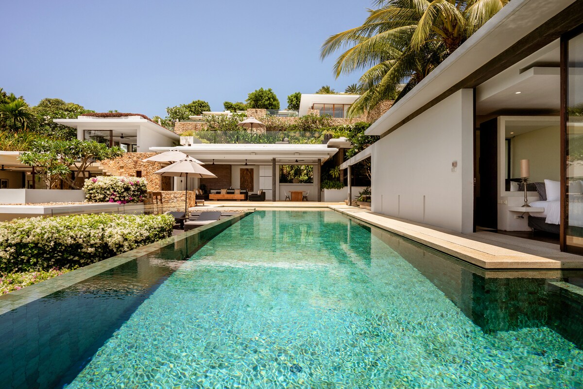 Villa Orca, managed by Inspiring Living Solutions, is a stunning five-bedroom sea-view villa in Koh Samui’s north-east. Designed in a modern tropical style, it blends natural textures, open spaces, and elegant comfort — perfect for families or friends seeking a stylish island escape.