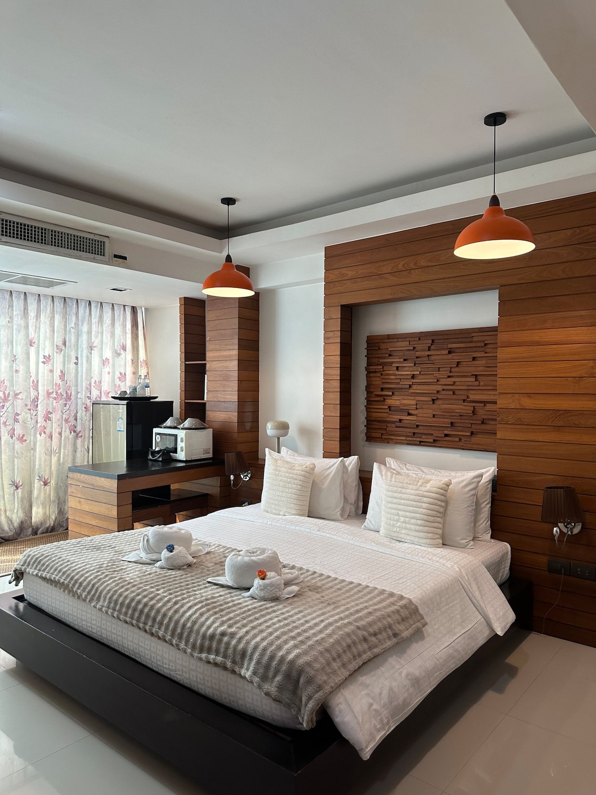 Experience modern comfort in our freshly renovated room, just a step from BTS Ari. Enjoy stunning city and sunset views from large windows, perfect for relaxing after a day of exploring Bangkok. Our space features midcentury-inspired decor, a cozy king sized bed and a peaceful ambiance. Conveniently located near trendy cafes, local markets, and public transport, it’s ideal for urban explorers looking for a chic retreat in the heart of the city.