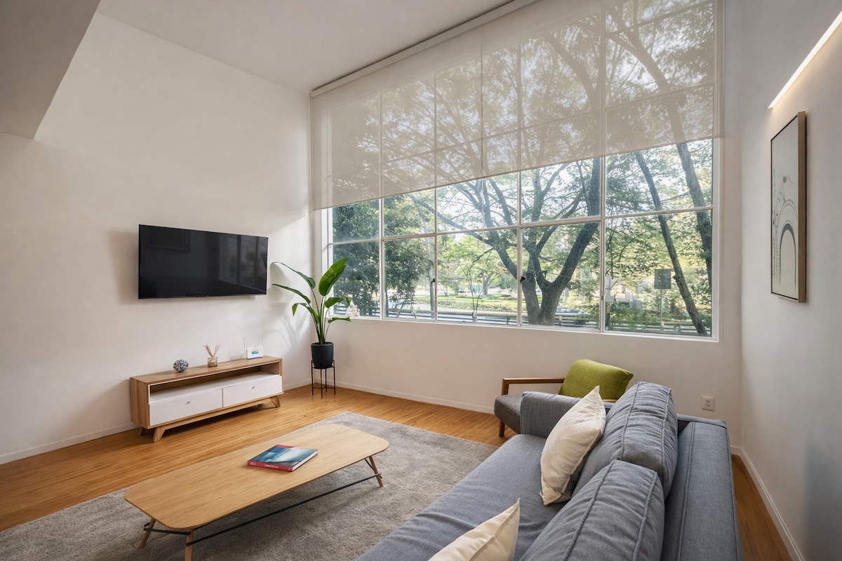 Ubicado en el corazón de la Colonia Roma, uno de los barrios más vibrantes de la Ciudad de México, este espacioso departamento te sitúa a pasos de los mejores restaurantes, bares, boutiques y puntos culturales. Con techos altos, mucha luz natural y muebles modernos, ofrece lujo y comodidad. El diseño de concepto abierto integra cocina, comedor, sala y terraza privada. La recámara con cama king-size y espacio de trabajo está en el primer piso, brindando mayor privacidad y confort.