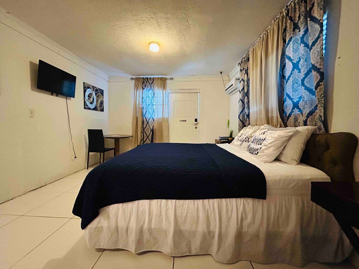 Our home is just a 10-15 minute bus ride away from downtown Nassau, shopping & Nassau's major attractions. This unit is also just a 10-15 minute walk to white sandy beaches. It is a newly renovated, clean, spacious 1 bedroom 1 bathroom studio apartment with a great queen size bed, new A/C, Wifi & TV with an android box. Our space is good for couples, individual travelers and business travelers. The apartment is near public transit so you can access the island by bus.