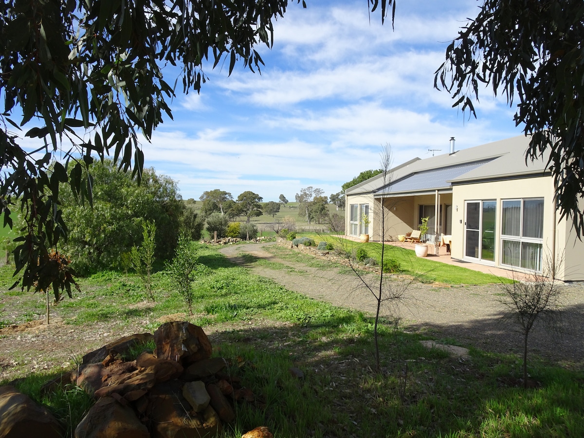 Ubicada en 80 acres en el corazón del valle de Barossa, esta ala de invitados privada y autónoma está rodeada de viñedos y jardines. Nuestro retiro te devuelve a la naturaleza... con paseos por viñedos y matorrales (acompañados por al menos uno de nuestros border collies), gansos amistosos, un curioso pavo real que vaga libremente, gallinas, canguros rescatados y salvajes, el ocasional koala y una gran variedad de aves. Disfruta de las vistas desde las terrazas, siéntate junto a la fogata (durante los meses más fríos) o relájate en la hamaca.