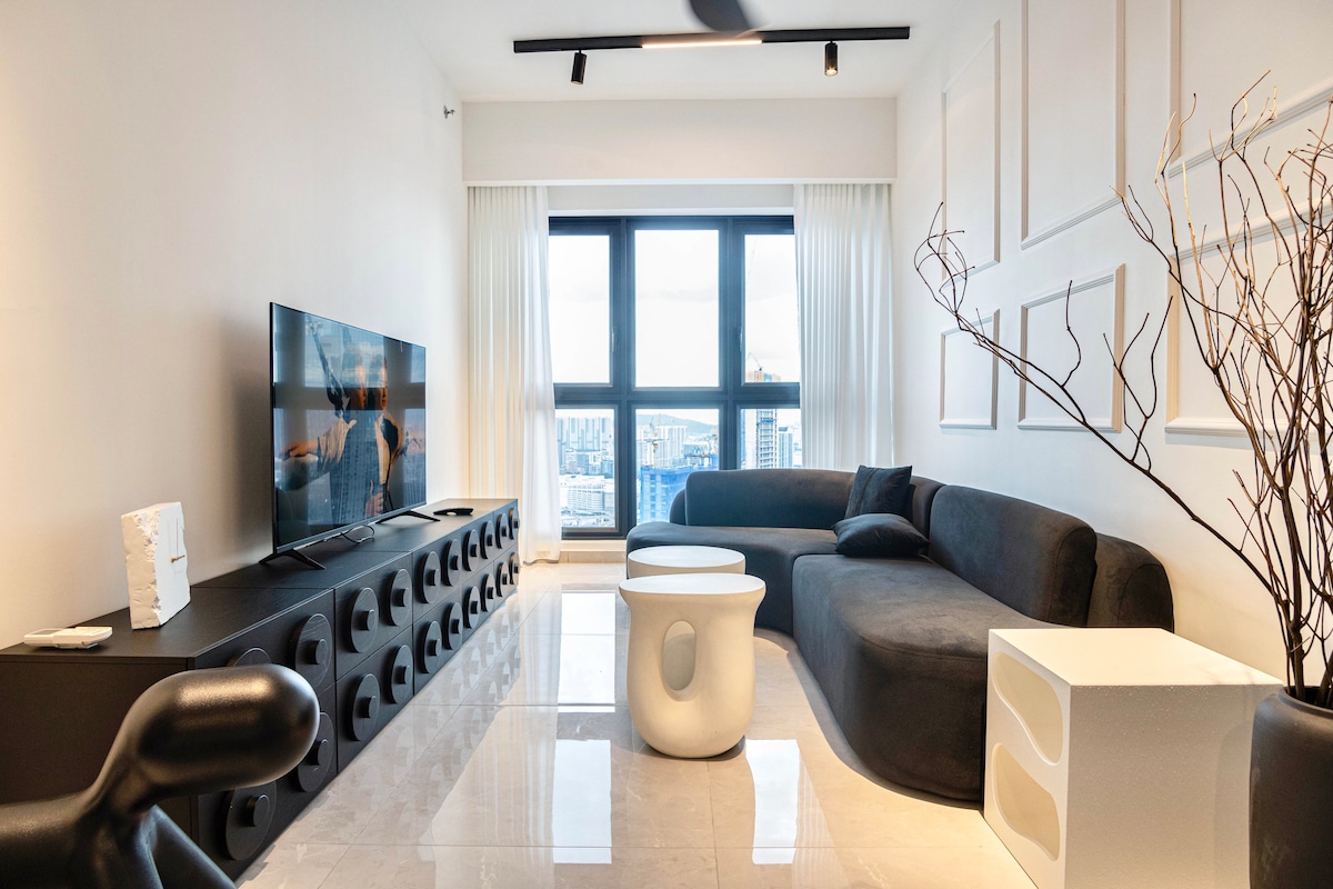¿Por qué alojarse en The Elegance Suite en Lucentia Residence? - las mejores vistas de KL - Hermosamente decorado con un espíritu divertido - Ubicación céntrica - cerca del transporte público. - Wifi rápido - 2 televisores con Netflix, Apple TV, Prime Video. - 2 piscinas hermosas. - Apto para familias con cuna y silla alta. - Gimnasio, mesa de billar, barbacoa, piano. - 1 estacionamiento. - capacidad para 4 personas, máximo 5 - LalaPort Shopping Mall y la calle de entretenimiento WOW están adjuntos. - Tienda de comestibles, farmacia y muchos restaurantes están conectados - cine GSC