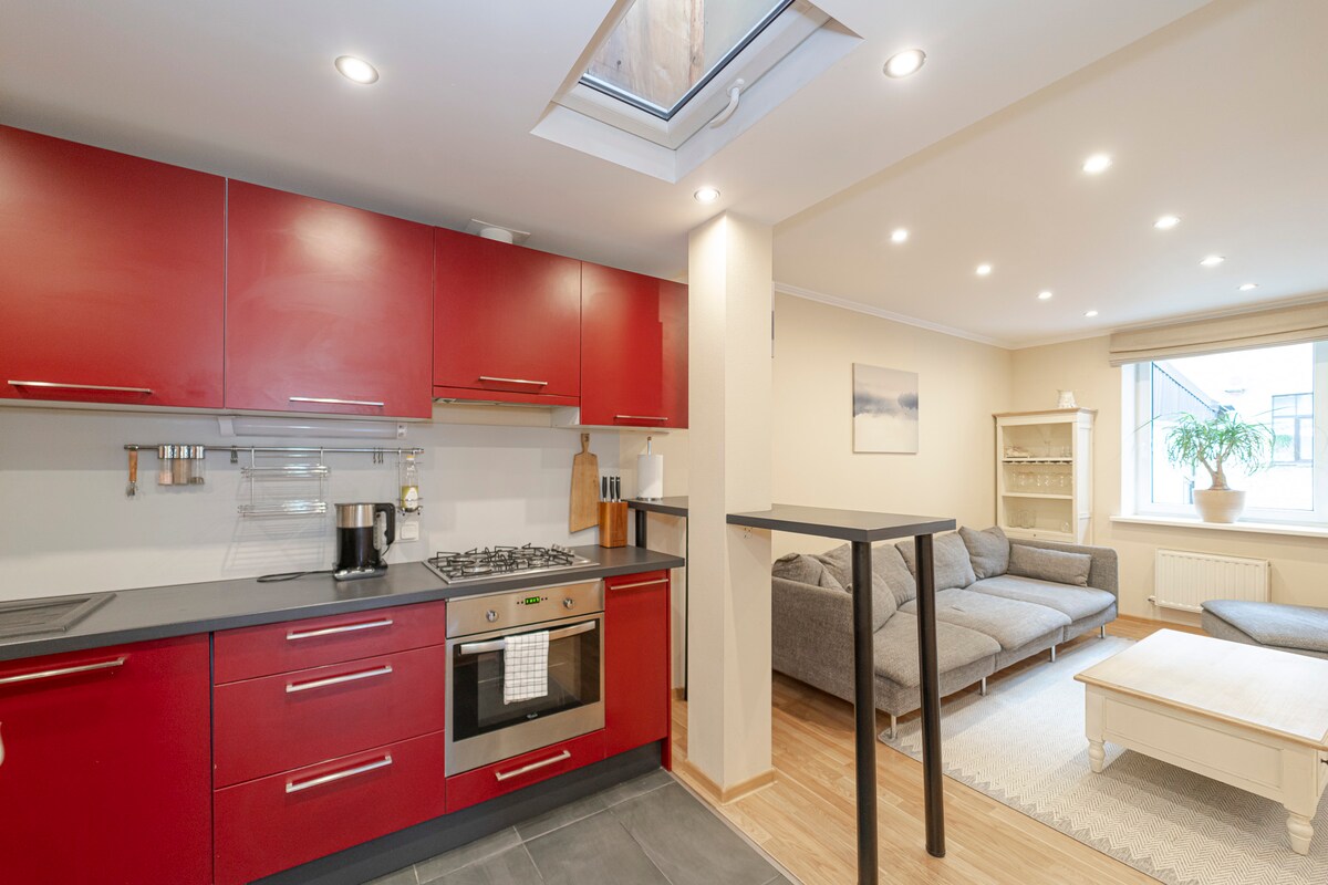 Amplio apartamento contemporáneo de dos plantas en el último piso con techos altos, mucha luz natural y una gran terraza. El apartamento está situado en el barrio Art Nouveau, un barrio prestigioso y acomodado a solo 10 minutos a pie del casco antiguo, conocido por su arquitectura y su selección de restaurantes y bares. Te encantará el espacio del apartamento, el ambiente relajante, la gran terraza, la cocina totalmente equipada, el comedor y la sala de estar. Perfecto para relajarse después de explorar la ciudad.