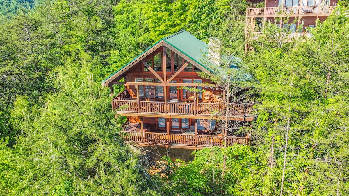 ¡Tu elegante aventura en la montaña te espera! Avalon Ridge es una impresionante cabaña privada y moderna, situada en lo alto de las montañas Smoky, con vistas inigualables. El amplio dormitorio cuenta con una chimenea de piedra y una lujosa bañera, el loft del bosque está rodeado de viejos árboles de madera dura y las ventanas del suelo al techo muestran la vista desde cualquier lugar de la cabaña. Disfruta del amanecer desde el mirador del desayuno o relájate con un lujoso baño en el jacuzzi privado. ¡Reserva hoy mismo este refugio en la cima de la montaña!