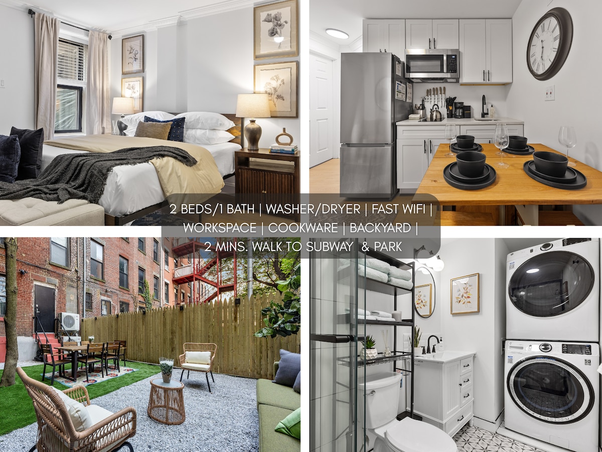 Casa de piedra rojiza de 2 dormitorios con patio trasero privado cerca del metro
