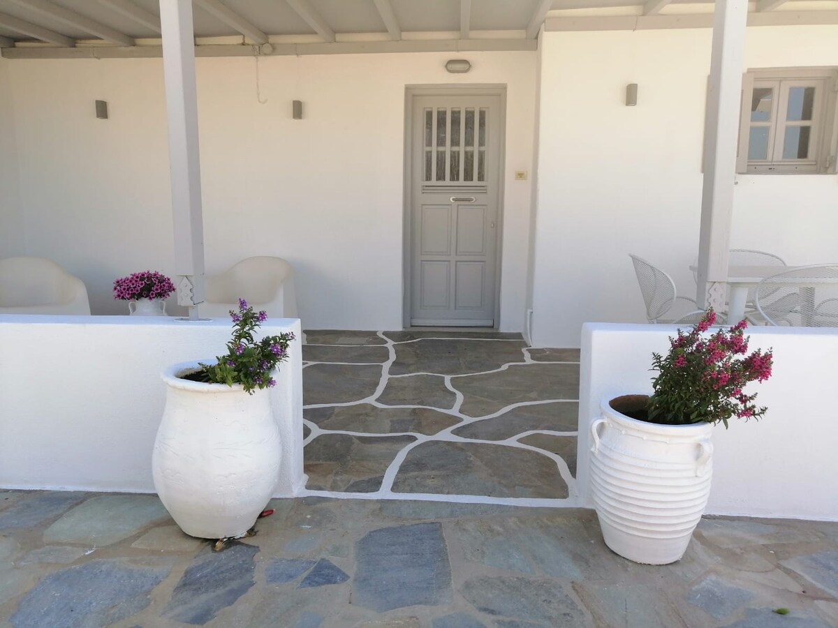 Disfruta de una casa nueva con espacios cómodos y amplios para momentos de relajación, diversión con una vista al atardecer. Capacidad para 3 adultos y 1 niño. A 10 minutos a pie de la playa de Livadia para nadar o para dar un paseo por el centro de Parikia. ¡En coche en 2' en Parikia! En auto en Naoussa en 7'. Parada de autobús fuera de la casa a Naoussa o Parikia. Está a 25 minutos del aeropuerto. Tenemos todos los accesorios para bebés, ¡solo pregúntanos! Check-in a las 13:00 La salida es a las 11:00 ¡Estacionamiento gratuito!