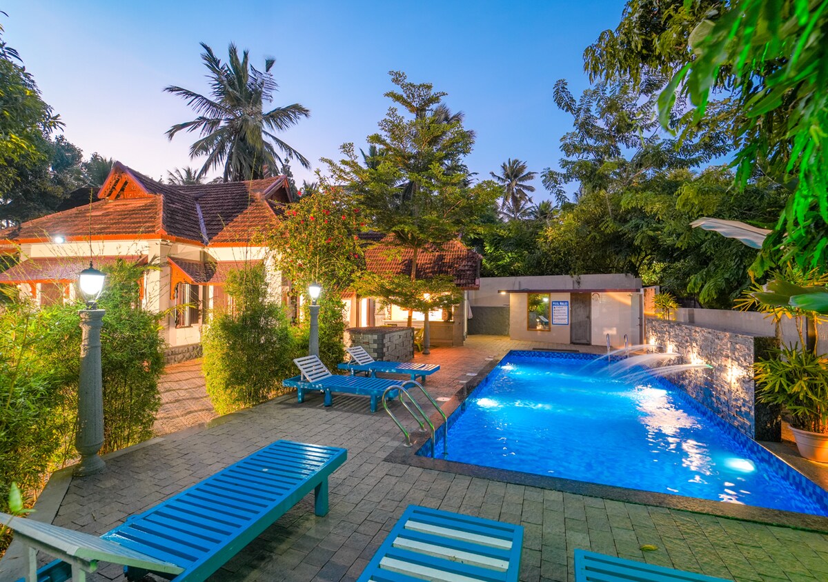 Discover a luxury private pool villa near Kovalam Beach, where heritage charm blends seamlessly with modern comfort. This beautifully restored 2-bedroom heritage villa in Kovalam offers a peaceful and private stay, ideal for families, couples, or small groups seeking relaxation. Located just 550 meters from Kovalam Beach and featuring a private swimming pool, spacious interiors, and easy beach access.