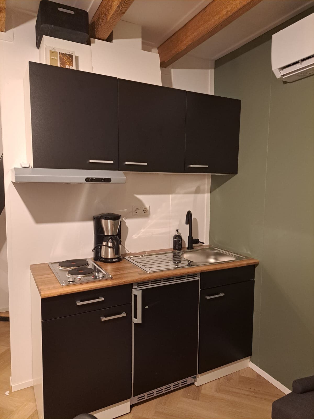 "B zonder B" se encuentra en el centro de la ciudad fortificada de Tholen. Tiene su propia puerta principal. El propietario vive encima del apartamento. El apartamento está dividido en una sala de estar (con cocina y sofá cama) y un dormitorio. El apartamento está en la planta baja y tiene acceso al jardín. El jardín se comparte con el propietario. Hay plazas de aparcamiento en el mercado y en la calle del bosque. El apartamento se puede alquilar por un mínimo de 2 noches y un máximo de un mes.