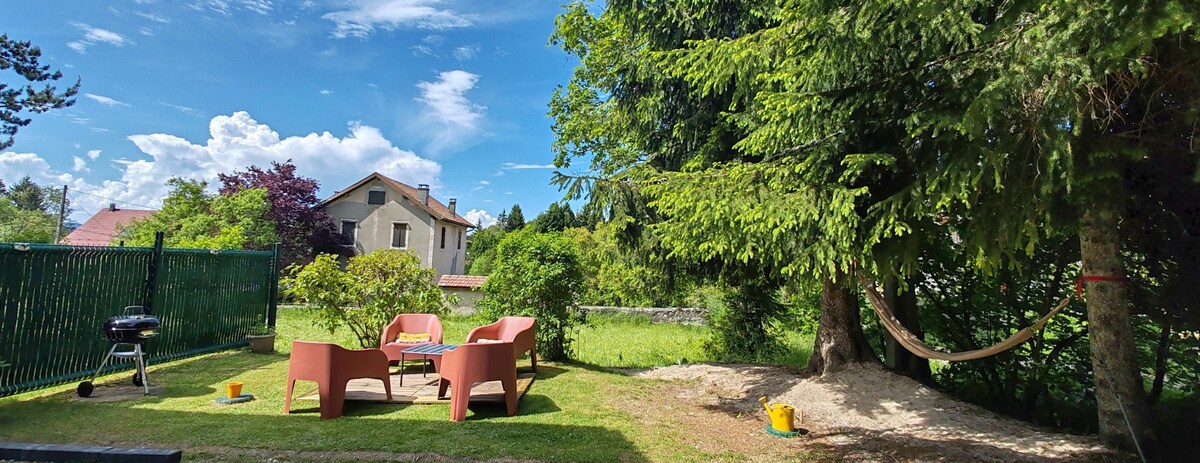 Hermoso apartamento nuevo en planta baja de chalet, orientado al sur tranquilo y en el borde del bosque. Jacuzzi PRIVADO 💦 El chalet se encuentra a 5 km de las estaciones de esquí de La Clusaz y Grand-Bornand, a 20 km de Annecy, a 50 km de Ginebra y a 80 km de Chamonix. Al pie del macizo de Aravis, disfrute de muchas actividades: esquí, raquetas de nieve, paseos en trineo, trineo, piscina, spa, parapente, ciclismo de montaña, natación en el lago de Annecy (barco, wakesurf, paddle, canoa...), visita a Annecy, Ginebra o Chamonix.