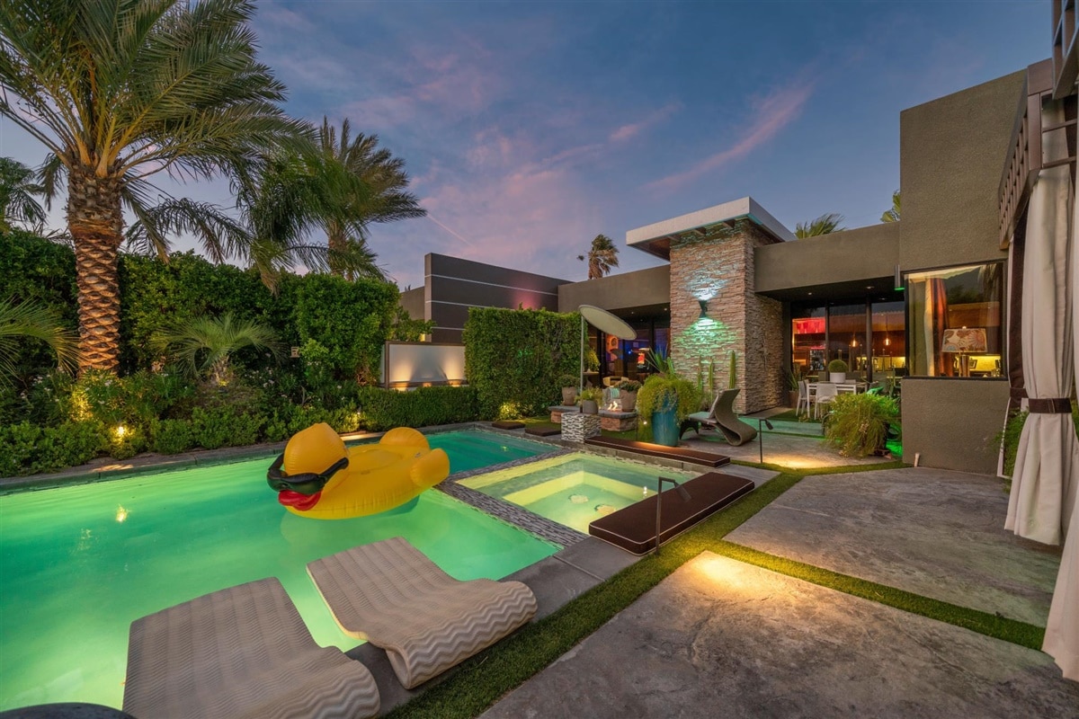 Twin Palms de mediados de siglo con piscina privada, spa y vistas