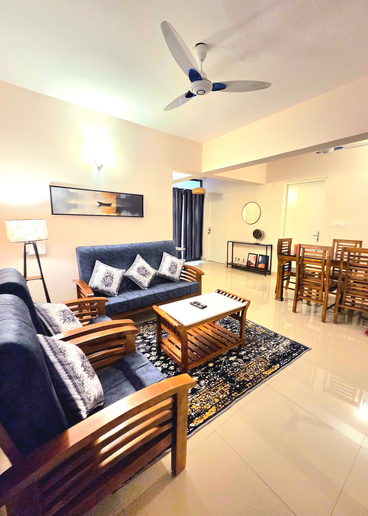 Olvídate de tus preocupaciones en este espacio espacioso y sereno. Ideal para familias . Wi-Fi y TV gratis Aire acondicionado dividido, TV y ventiladores de techo en los dormitorios y enfriador de aire + ventilador de techo en la sala de estar. Cama1 con 2 camas individuales que se pueden unir. Cama 2 con una cama tamaño queen. Sala de estar con un diwan convertible en una cama . Amplia sala de estar donde la zona de estar o el gran comedor se pueden convertir en un espacio de trabajo. A 6 minutos del aeropuerto de Kochi y del centro de convenciones CIAL y a 20 minutos del centro de convenciones de Adlux.