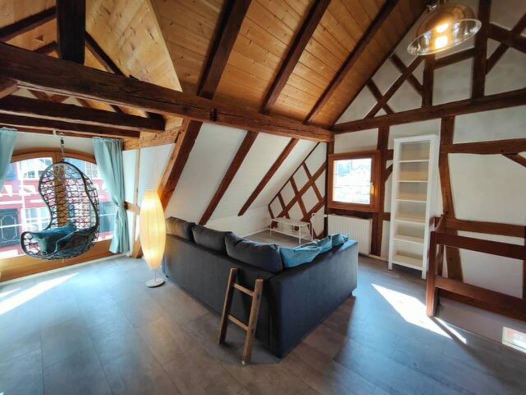 Hermoso y exclusivo loft DG (150 m2) con vigas expuestas y altura a dos aguas de hasta 4 m en el centro de la ciudad de Amriswil. Disfruta de tu estancia con hasta 7 personas en las inmediaciones del lago Constanza entre Konstanz y Bregenz.