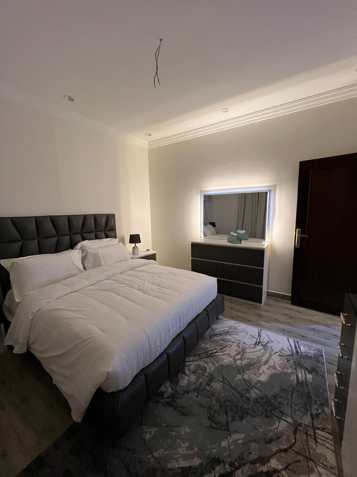Apartamento de alquiler diario en la ciudad económica de King Abdullah Diseño elegante para la recreación y el disfrute de alojarse en King Abdullah City para familias e individuos y cuenta con presencia , TV inteligente, Internet gratuito, estacionamiento , sillón de masaje También cuenta con una proximidad cercana al puerto deportivo, al mar y al área de eventos. Nos aseguramos de ofrecer los mejores servicios y atención al detalle .