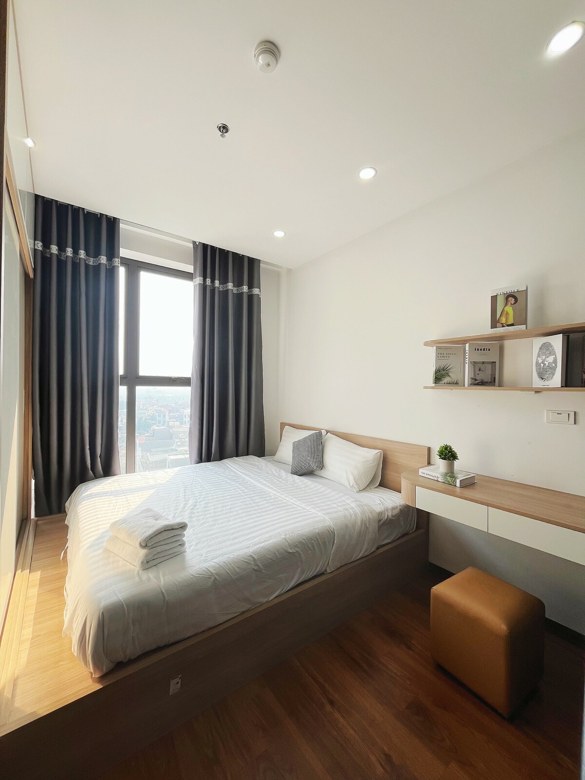 Ubicación céntrica, carretera grande abierta, estacionamiento conveniente, cerca del hospital, gran parque, lago con aire acondicionado. el edificio tiene un supermercado , piscina, gimnasio servicio de atención al cliente las 24 horas, los 7 días de sala de estar con amplio balcón, 2 dormitorios cama grande, vista a la ciudad con lavadora y área de lavandería separada Ropa de cama con los estándares de un hotel de 5 estrellas Cubre secador de pelo, microondas, cocina con utensilios de cocina completos Café, té y agua filtrada gratis ver una película en Netflix, disfrutar de un espacio sofisticado con un ser querido❤️