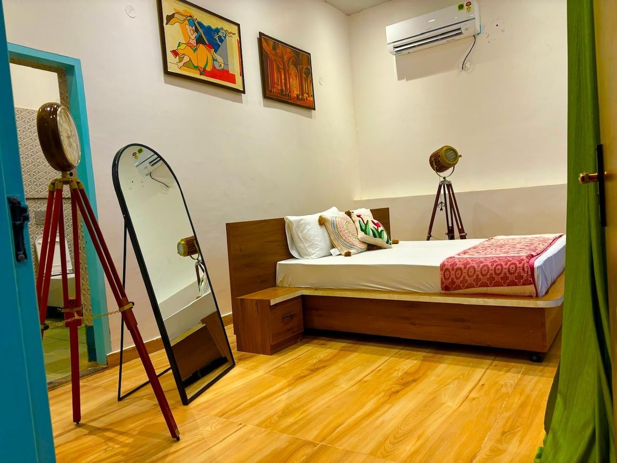 Take it easy at this unique and tranquil getaway just one hour from Delhi. Set in the beautiful Aravalis surrounded by a lush green Golf Course, this studio has a lot to offer. Fully equipped kitchenette, lovely sit-out, comfortable bedroom and lounge, brand new washroom, internet, smart TV, world class restaurant in the complex, walking tracks and beautiful views. Catch the sunset and watch the moon rise in clear skies. Experience the modern with the rustic, a once-in-a-lifetime experience.
