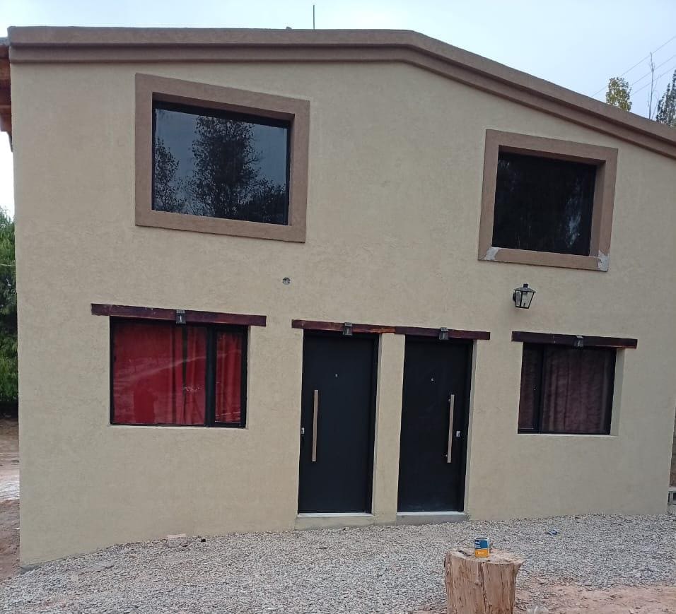 Es una cabaña amplia para cinco persona cuenta con una cama matrimonial y tres camas de una plaza y media con un baño con ducha agua caliente por termotanque solar una cocina pequeña una heladera bacha y una pileta pequeña para lavar ropa si lo desea en el dormitorio mas amplio se encuentra las camas de una plaza y en dormitorio mas pequeño la cama matrimonial donde también se encuentra una s ventanas amplia donde se puede ver el paisaje del pucara cuenta con un asador y una mesa