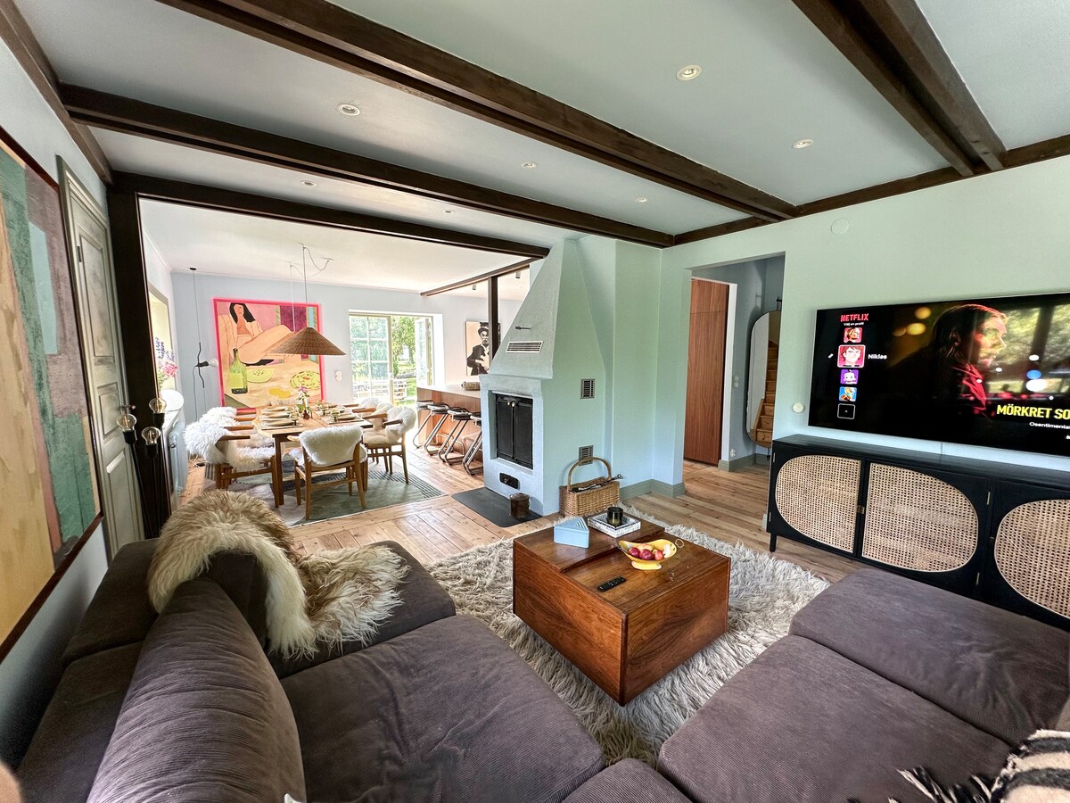 Bienvenido a nuestra casa de ensueño de 110 metros cuadrados diseñada por arquitectos. La casa se divide en tres dormitorios, un invernadero, baño, cocina, comedor y sala de estar en el ático. Desde el ático también se puede salir a la terraza, que tiene una amplia vista del mar Báltico. El invernadero acristalado es el enlace entre la sala de estar y la zona de los dormitorios. Aquí puedes sentarte y mirar las estrellas o encender un fuego en la estufa. El baño tiene una bañera de piedra caliza. Bungenäs es una zona única sin coches, con aparcamiento a 800 m de la casa.