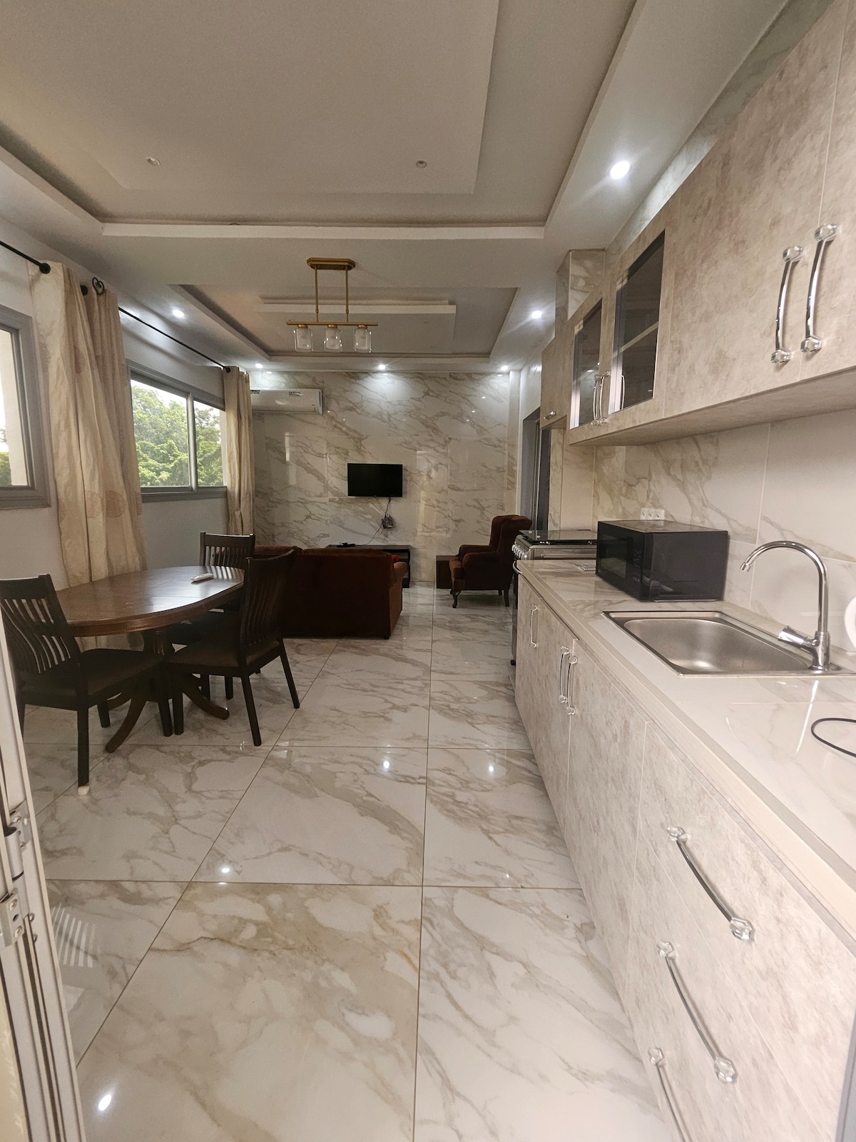 Un appartement luxueux très propre de chambre salon cuisine toilette meublé avec wifi. Il dispose également des équipements nécessaires pour un séjour agréable. L'appartement se situe à Thiès quartier Zac Nguinth dernière l'école Pédagogue. Un quartier résidentiel très calme et discret.