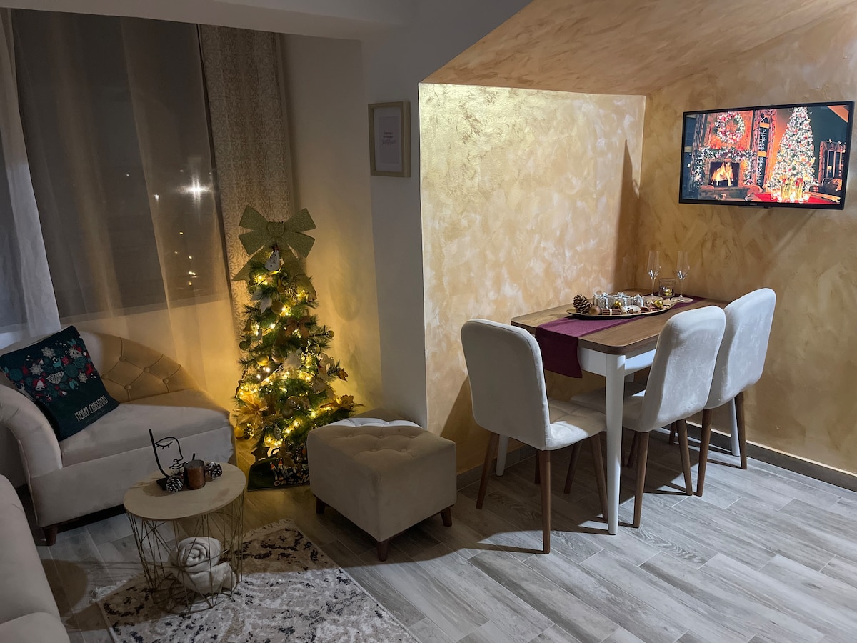 Welcome to our modern one-bedroom apartment with a private rooftop terrace, open bar, kitchen, barbecue and an infinity swimming pool. This peaceful retreat, located just a short 10-minute walk away from Porto Montenegro and 4km from Tivat airport, consists of: comfortable bedroom, living room, fully equipped kitchen and bathroom, featuring an access to a private rooftop terrace with an infinity swimming pool. Book your stay and experience the beauty of Porto Montenegro, Boka Bay and Tivat area.