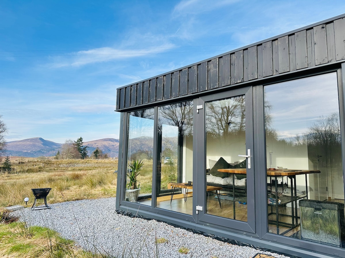 Romántica cabaña privada frente al lago con jacuzzi en Escocia